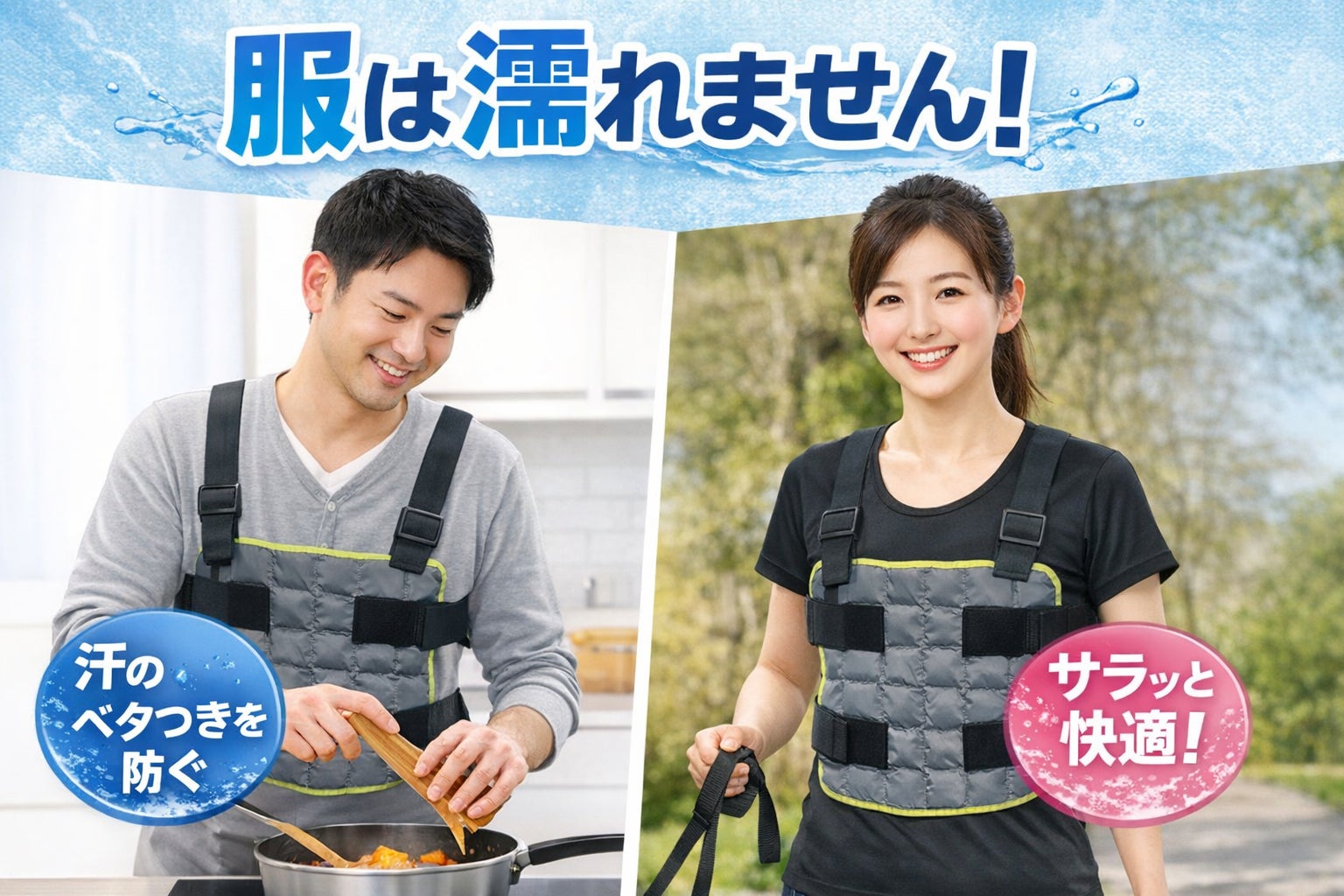 着るだけで暑さ対策。真夏の通勤スポーツ屋外作業を快適にする吸水冷却ベスト