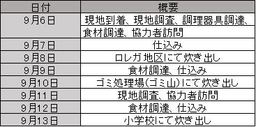 去年炊き出しを初めて行う以前は1年後の夏に食堂を建てようとしていたのですが、実際に炊き出しに行ったところ、自分たちはまだまだ甘いという現実が見えてきました。そのため私達は3年後までに食堂を建てるという目標に再設定いたしました。