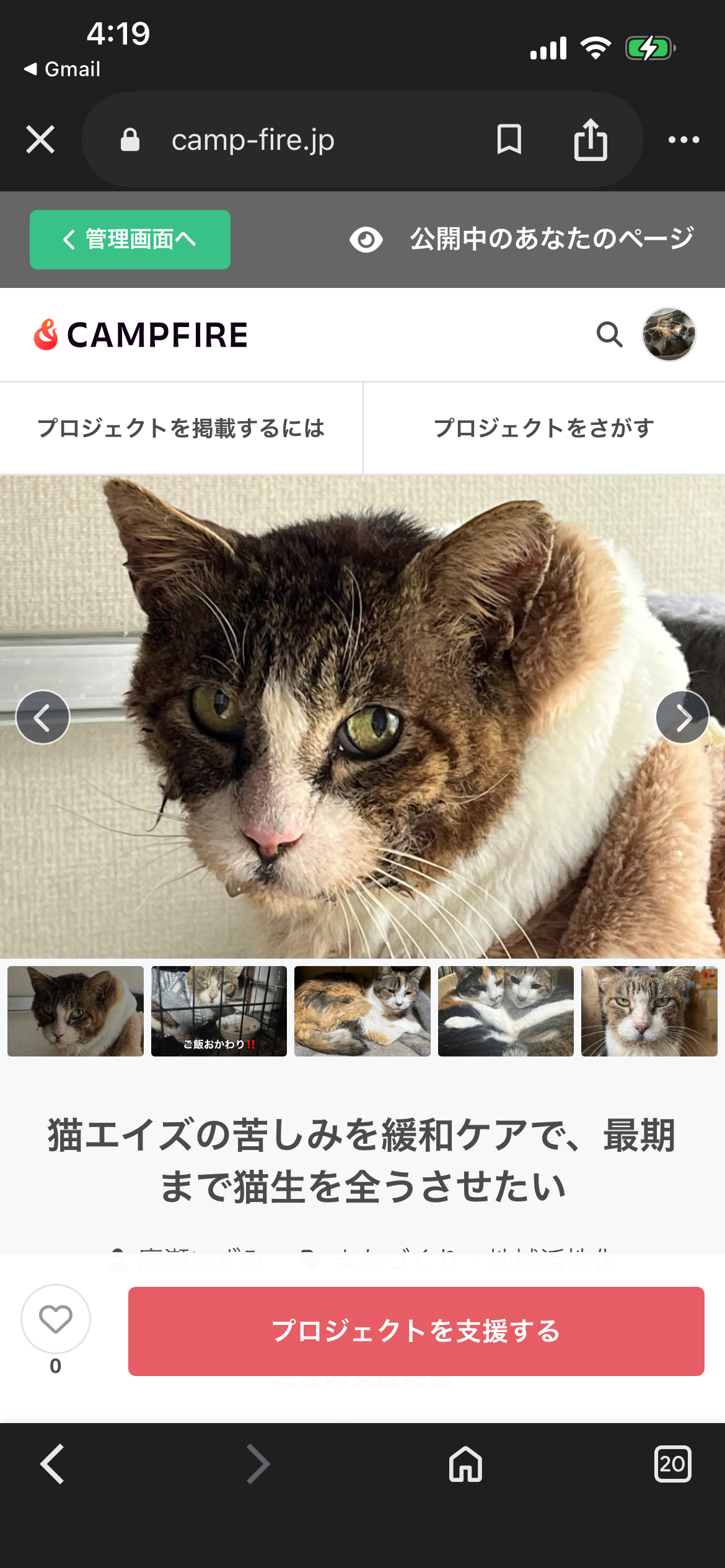 本日猫エイズ緩和ケア費用として、チャー坊とシマミちゃんのクラファンが立ち上がりました。