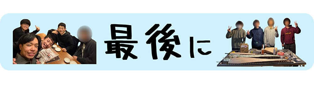 また、ともに機体をつくる仲間、高校時代に同じ挑戦をしたメンバー、支えてくださった先生方やOBの方々、ご協力くださった企業、そして応援してくださる皆さまの存在に、ここまで何度も支えられてきました。