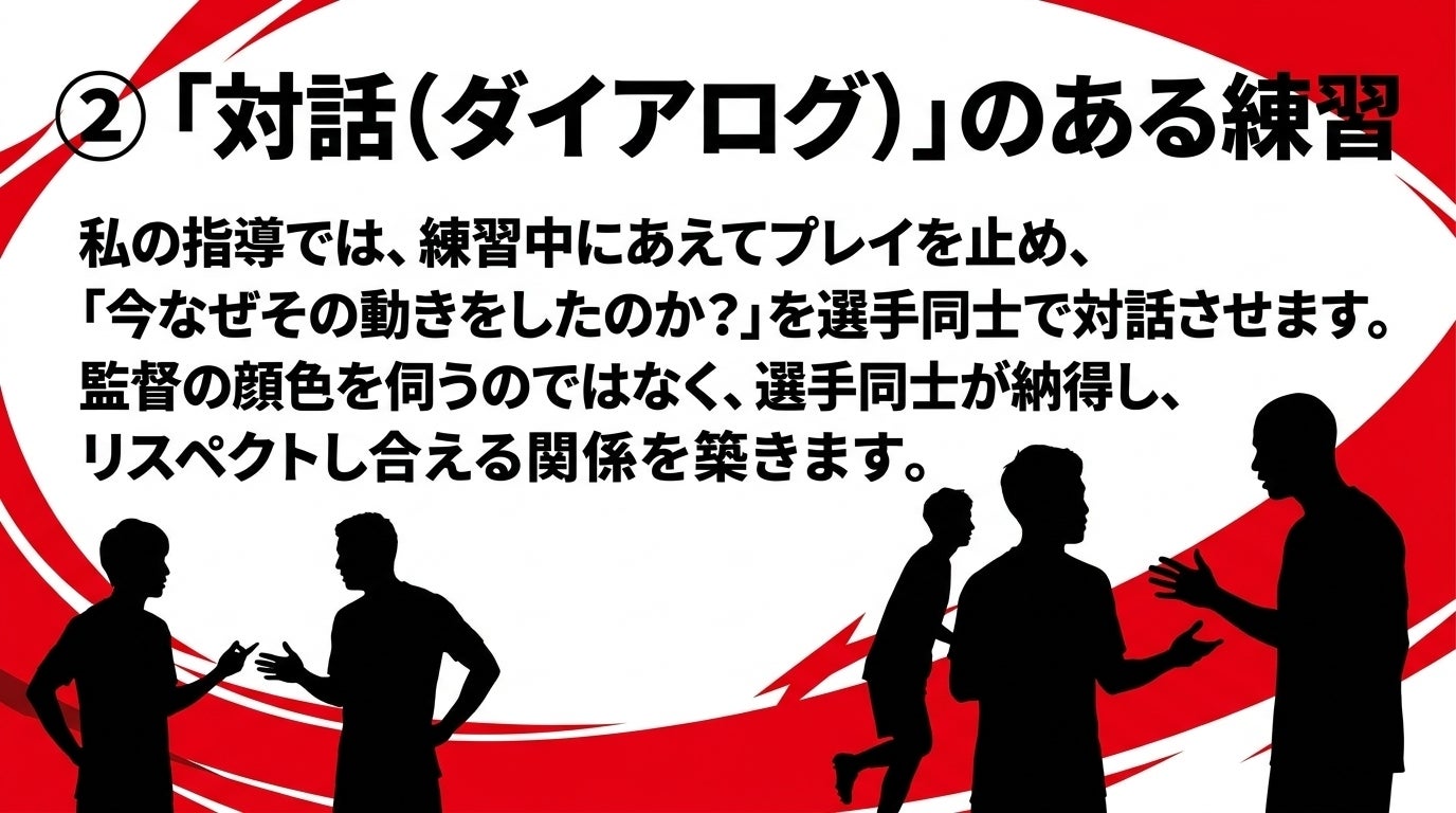 現役引退後、他のチームで10年間コーチを務めましたが、心の中ではずっと「自分の理想とする指導を、監督として実現したい」と願い続けていました。しかし、そのチャンスを逃すたび、「コーチとして子供たちに接することができれば十分だ」と、自分に嘘をついて自分を納得させていたのです。