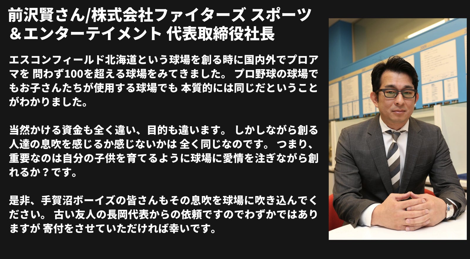 私は、この球場を単なる業者任せで完成させるつもりはありません。