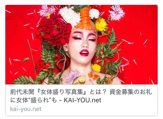 ▼前代未聞『女体盛り写真集』とは?資金募集のお礼に女体"盛られ"も