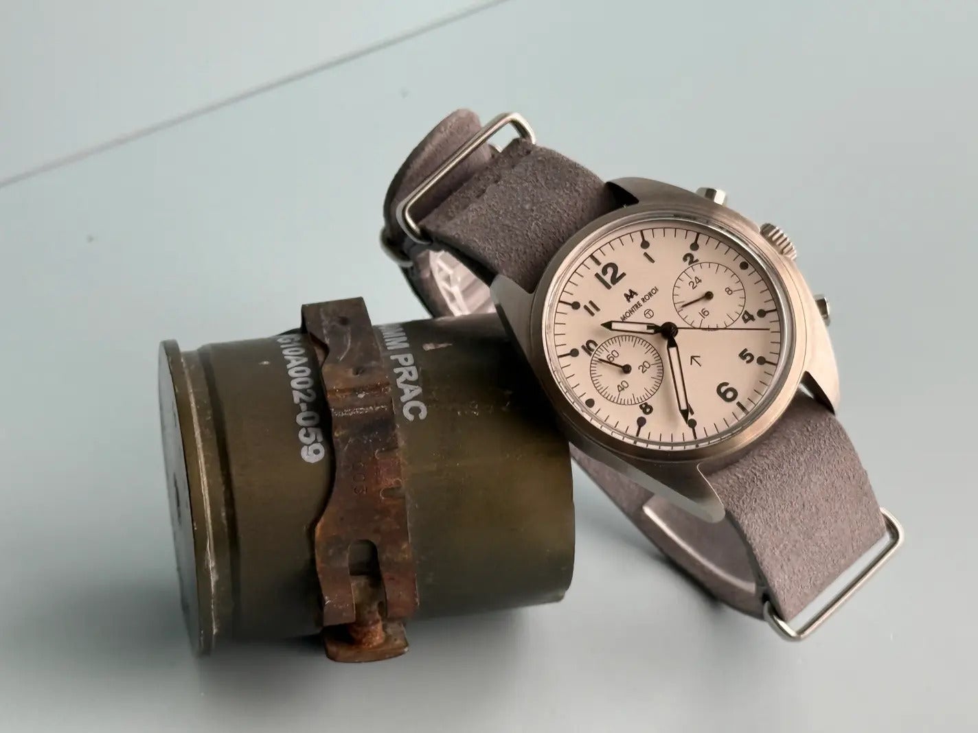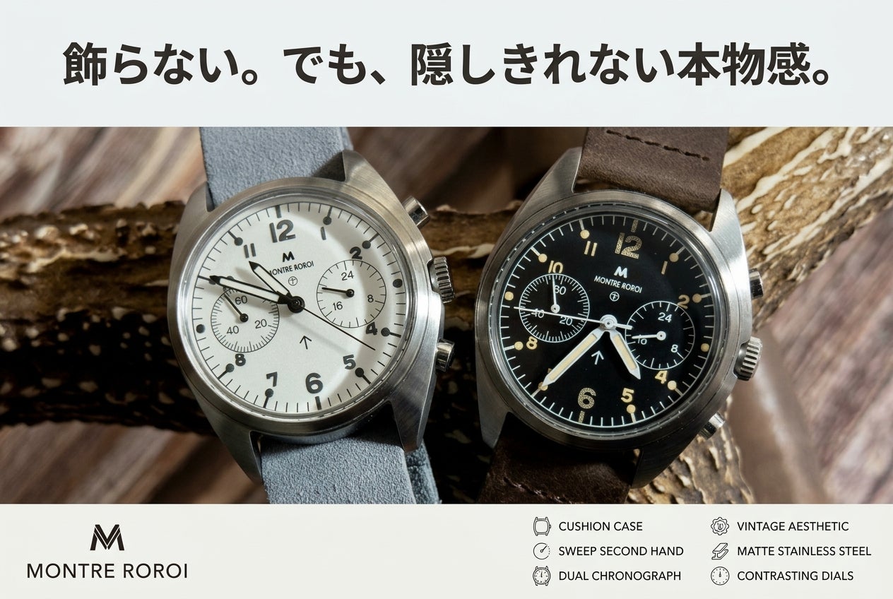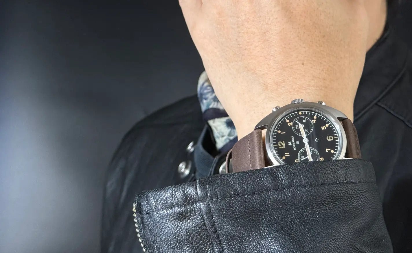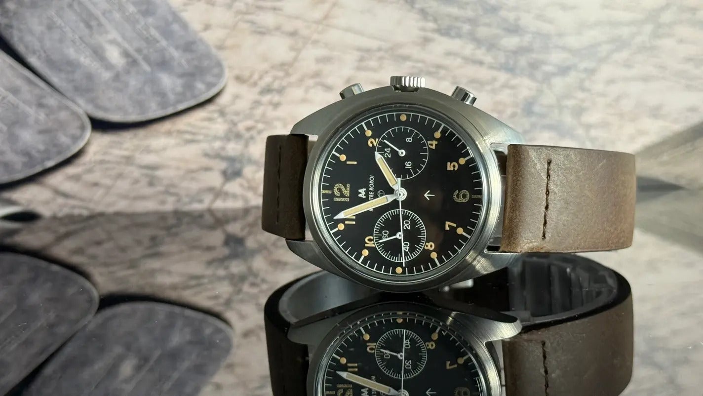 はい。1970年代に英国軍で採用されたパイロット用クロノグラフをベースに、当時の設計思想・サイズ感・操作性を研究したうえで復刻しています。ただし、単なる外観のコピーではなく、現代の使用環境に適した品質と仕上げを前提としています。