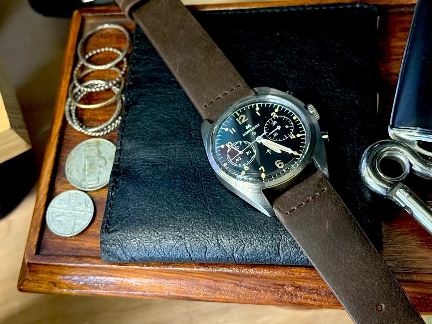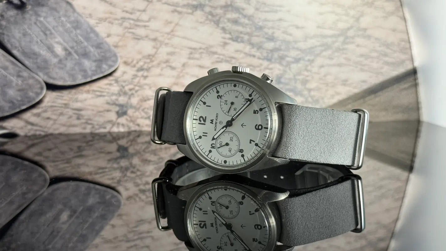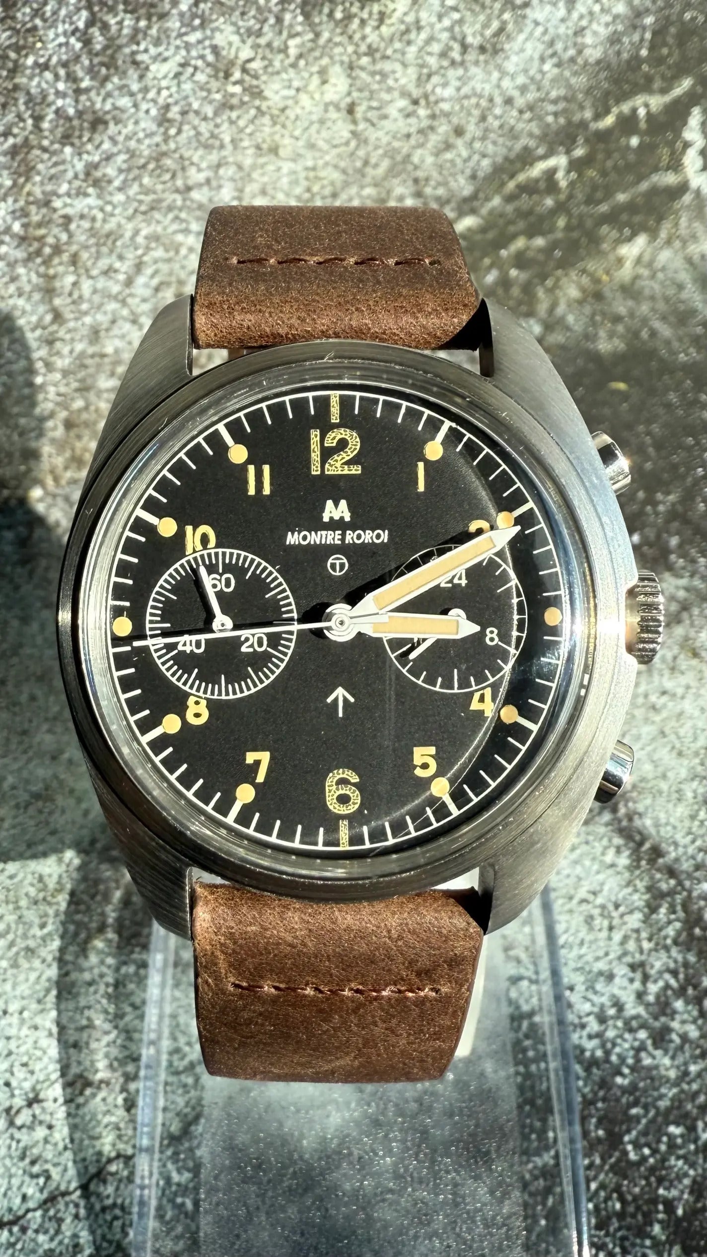 はい。1970年代に英国軍で採用されたパイロット用クロノグラフをベースに、当時の設計思想・サイズ感・操作性を研究したうえで復刻しています。ただし、単なる外観のコピーではなく、現代の使用環境に適した品質と仕上げを前提としています。