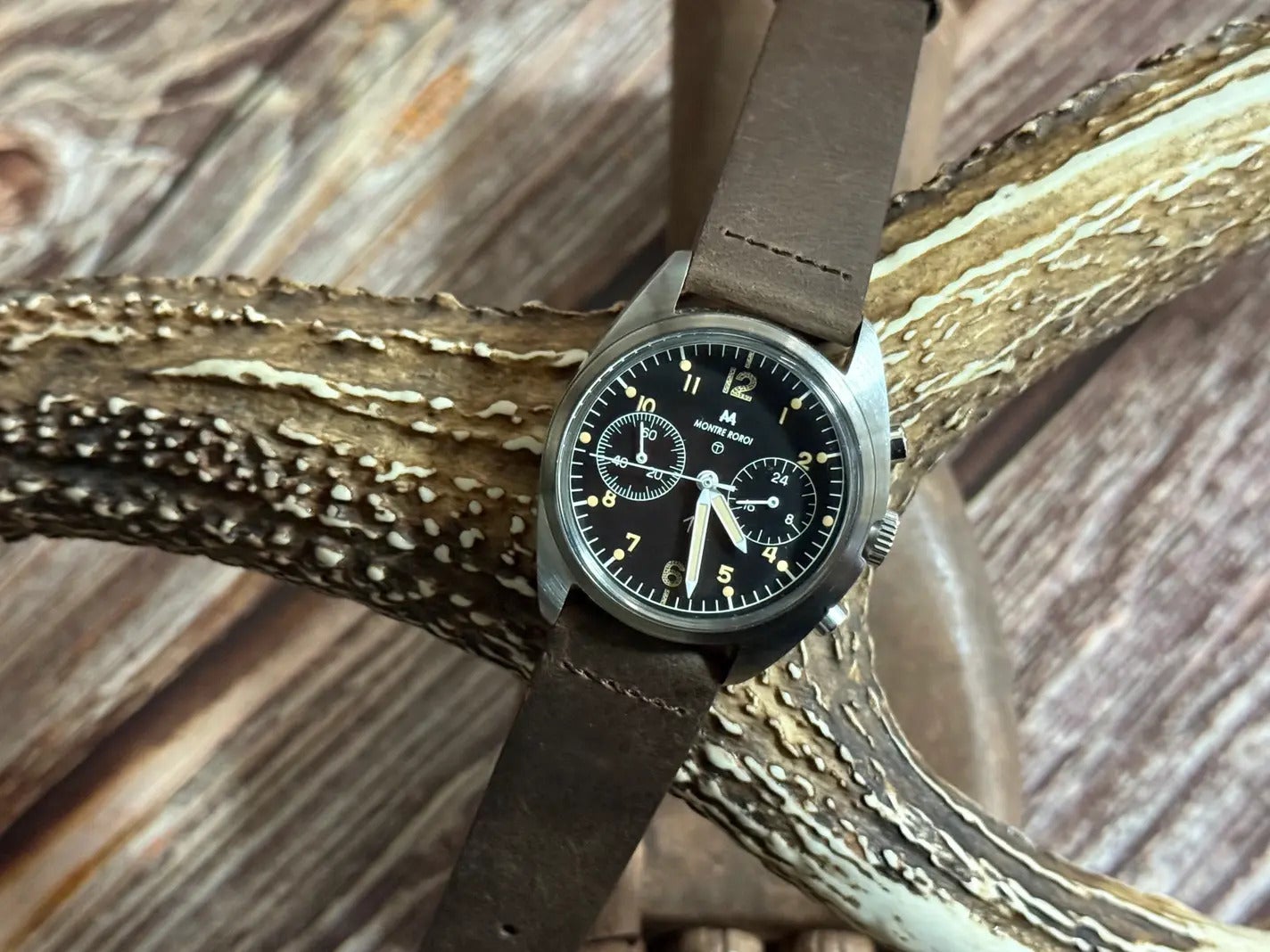 1970年代、**Ministry of Defence(英国国防省)**はRAFクロノグラフの仕様を見直します。その結果採用されたのが、2プッシャー・クロノグラフです。