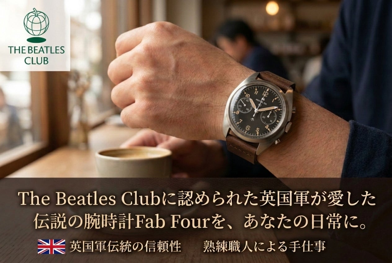 Fab Fourとは(素晴らしい4つ/4人組)という意味で、“完成度が高い・象徴的”な英国軍クロノグラフの完成形として後年コレクターの間で“Fab Four”と呼ばれるようになりました。そして同時期に英国で生まれた4人組スーパースター”The Beatles”が『Fab Four』と呼ばれたいた事が直接的な由来といわれています。