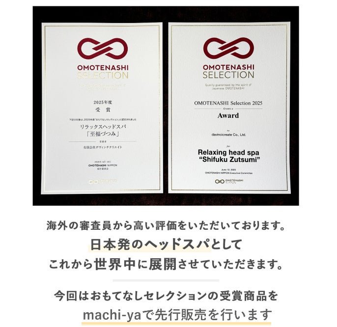 有限会社ダヴィンチクリエイトの原口です。このたびは、リラックスヘッドスパ「至福づつみ」の最新作を一般販売に先立ってご紹介させていただいております。