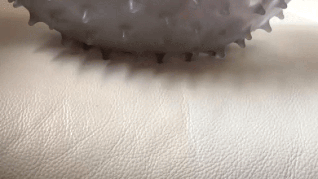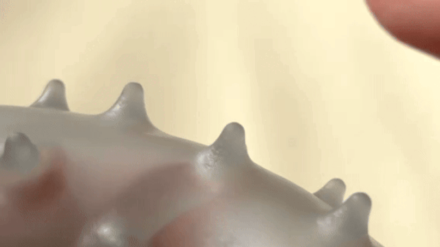 じつは、プニプニ弾力のあるPVC製で、肌に当たっても痛くなりにくい、心地よい刺激となっています。