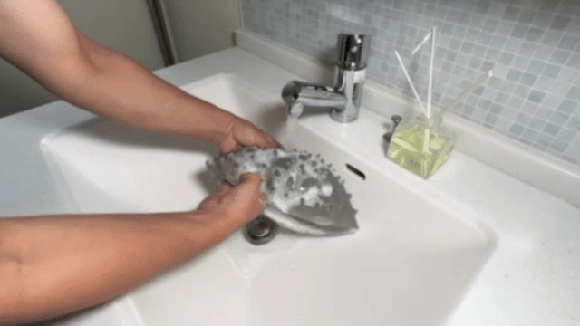 汚れても大丈夫!一般の頭皮ケアグッズでは皮脂や整髪料が付くと汚れを落とすのが大変ですが、酸やアルカリに強いPVCだけでできた「至福づつみ」なら、中性洗剤や石鹸で丸ごとジャンジャン洗えるのでお手入れも楽ちん!
