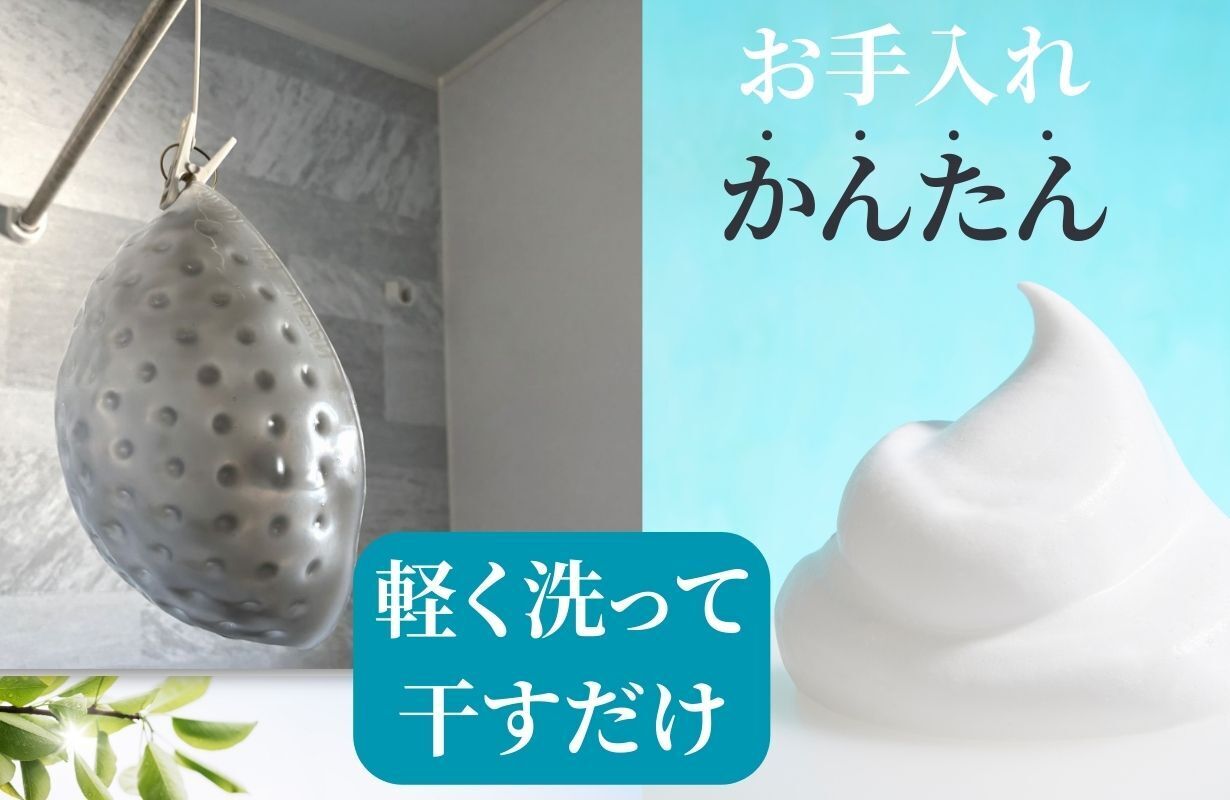 洗浄後はお風呂場でも屋外でも風通しの良い場所に干しておくだけで十分。長い間、衛生的にご利用いただけます。