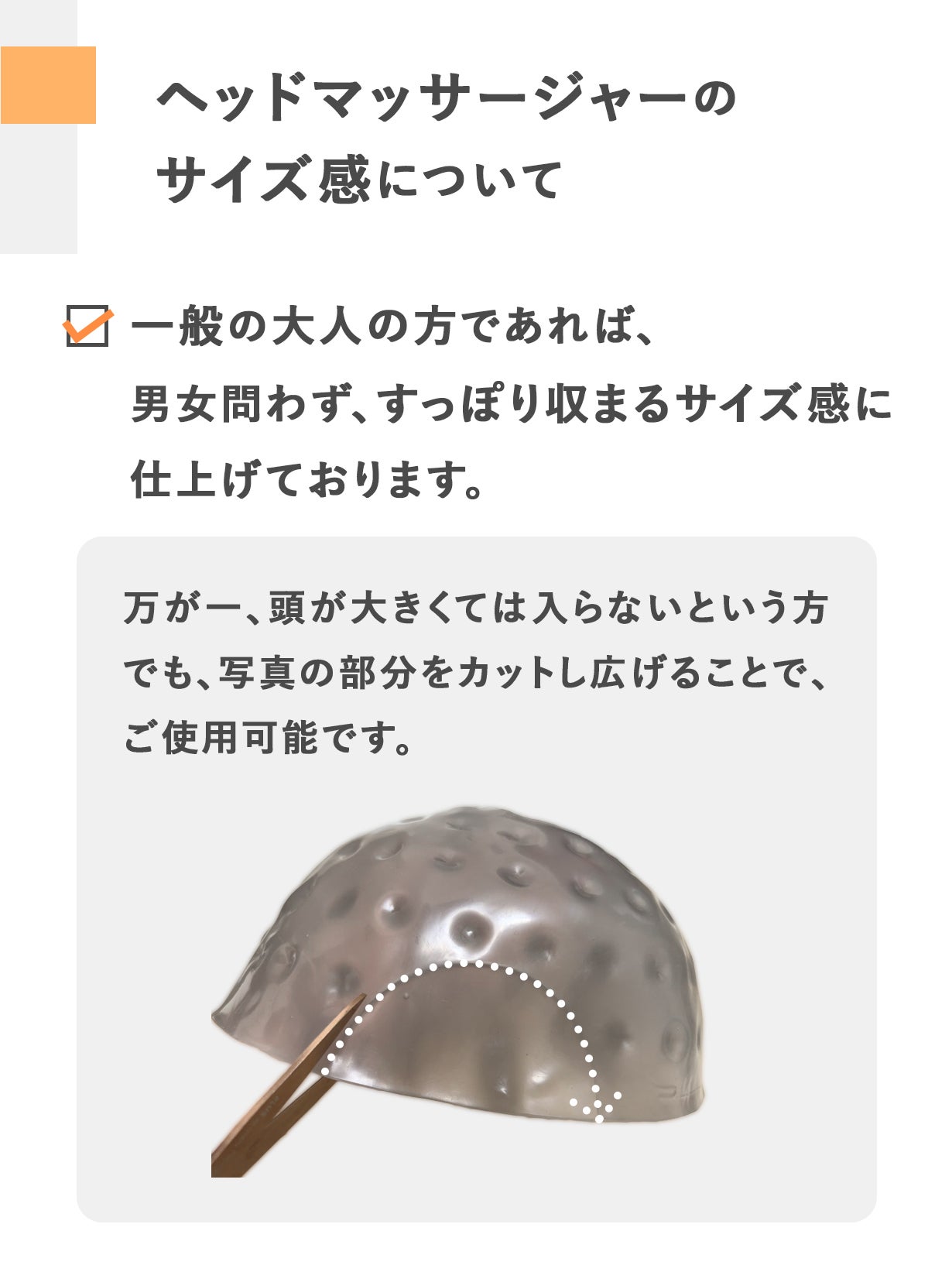 A. ご心配不要です。じつは、商品の側面に切り込み口があるため、頭が大きくてきついと感じる方は、そこをハサミでカットして使用可能なため、入らないことはございません。