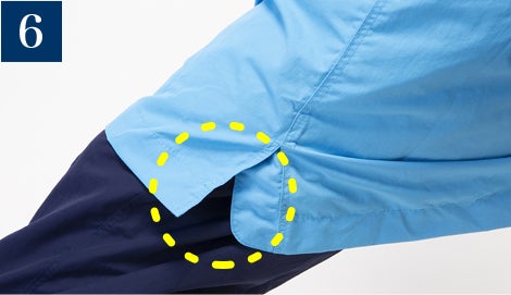 袖部分とフード部分はシャーリングで雨の侵入を防止。
