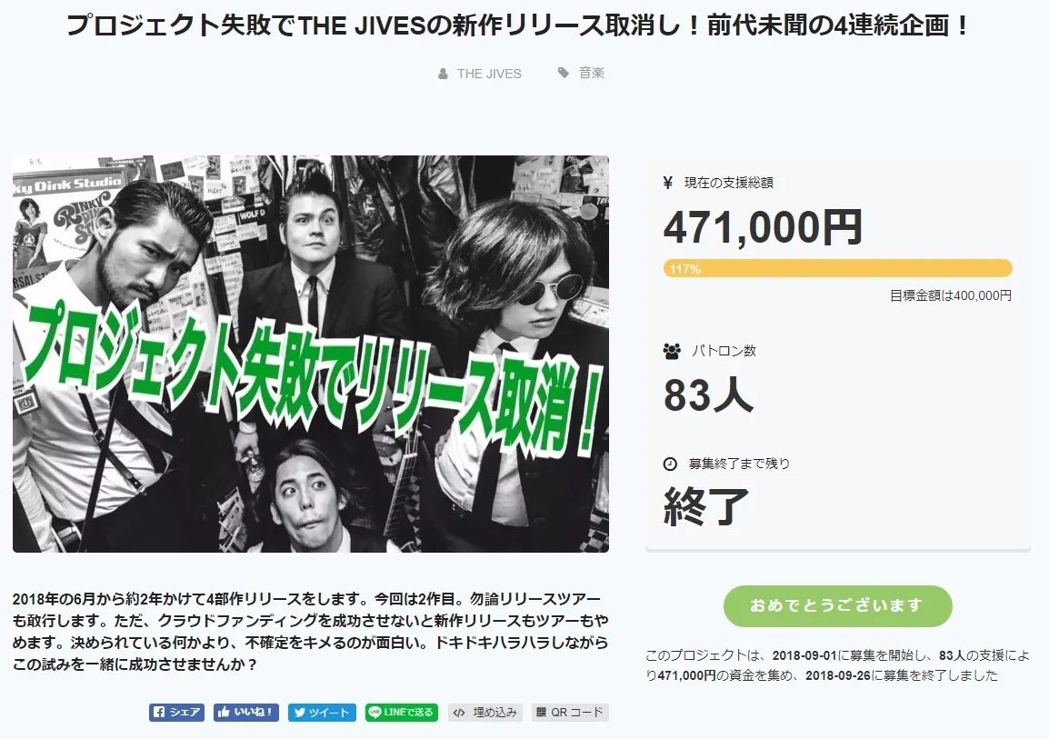 昨日をもちまして、THE JIVESが9/1より挑戦していたクラウドファンディングの企画