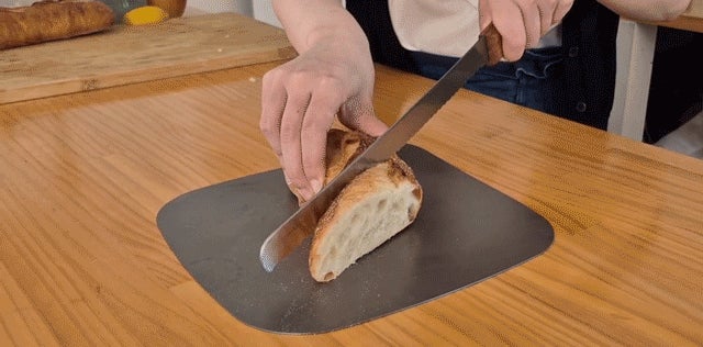 調理してそのまま食卓へ。パンやケーキを切ってそのまま出したり、まな板の上で料理の仕上げをしてそのまま出してもOK。高級感のあるシンプルなビジュアルが料理の魅力をさらに引き出すデザインです。