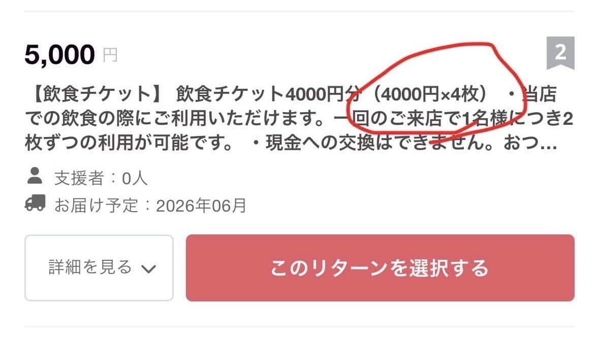 ※5000円支援のリターン内容ですが、表記に誤りがあり4000円分(1000円×4枚)となります。