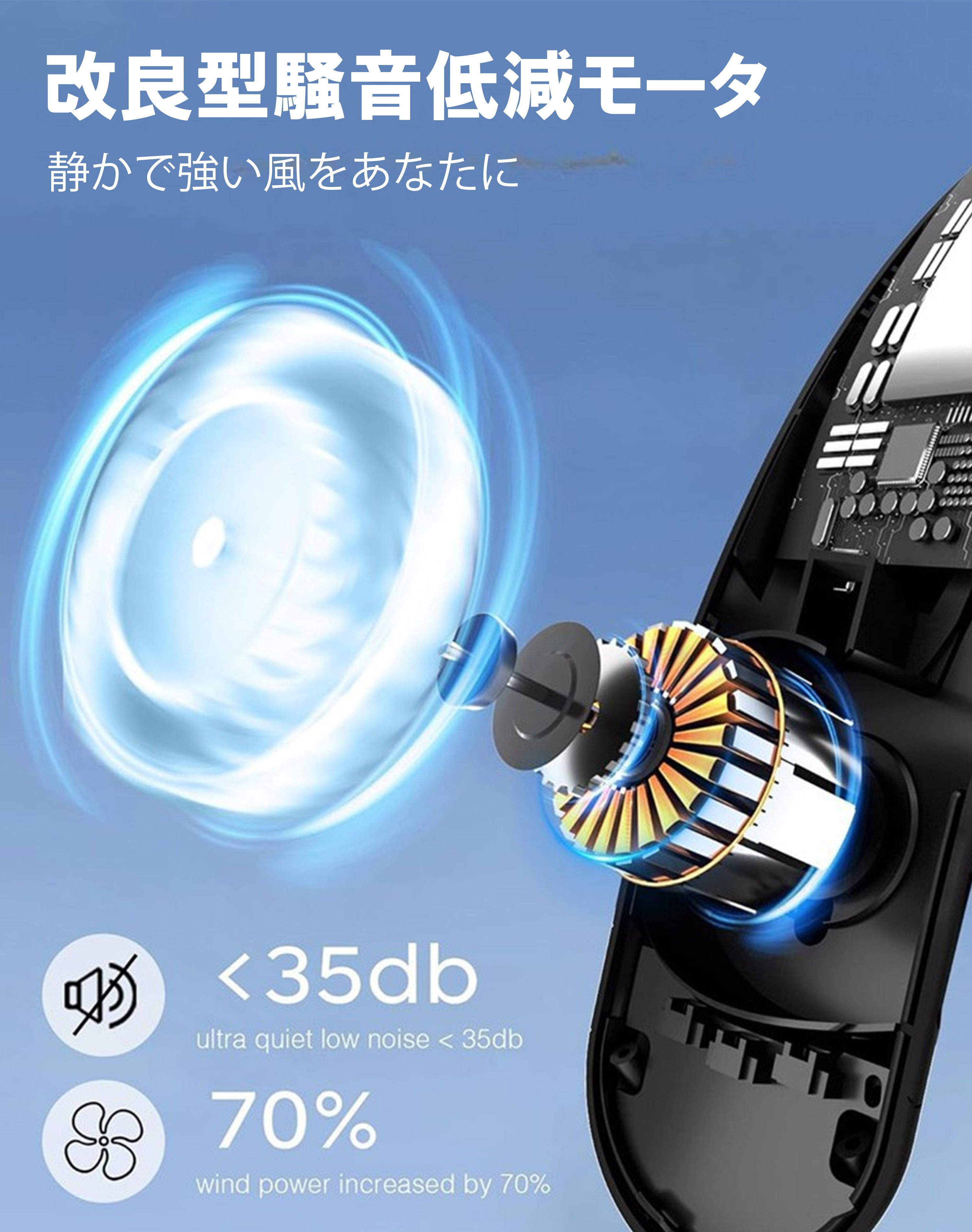 駅に着く前に汗だく、外に出た瞬間ヘトヘト…。そんな真夏の首元ストレスを、4基ターボが生む360°冷却気流で一気にクールダウン。最大7300RPMの強風、35dB以下の静音、最大7時間稼働で通勤から外回りまで快適。首元にフィットするNECK FREEZEで、この夏の熱だるさを凍らせる新体験を。