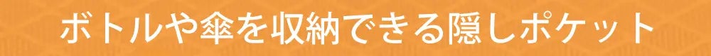 ボトルや傘を収納できる隠しウイングポケットを底部分に配置。ポケットを使用しない場合は、ペタンと折り畳まれ下の画像の様に本体と一体化します。