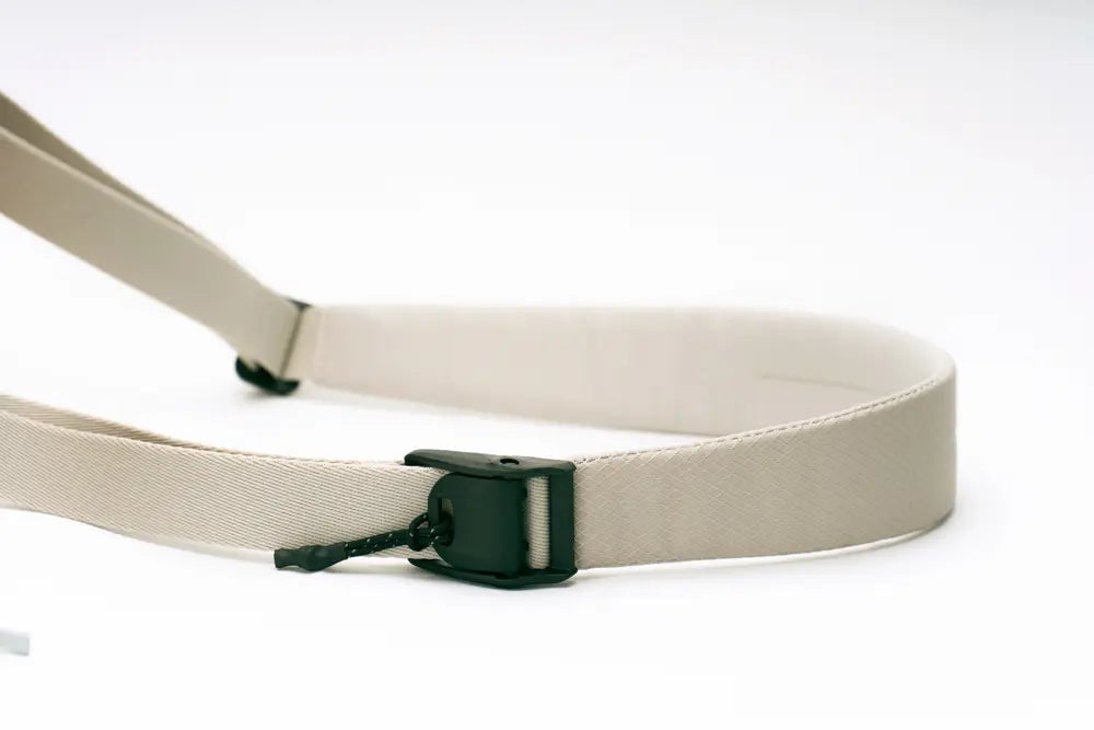 そのため、サイズ調整用のバックルがちゃんと利き腕などに合わせた向きでストラップを取り付けることができます。この仕様は持つ方を選ばない、どんな方にもフィットするNEO Nomad Slingならではのものとなっております。
