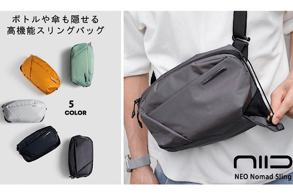 コンパクトサイズなのにアイテム別に収納できるポケットを多数配置。さらに隠しポケットには傘やペットボトルが収納できる「機能とデザインを両立させた」NIID「NEO Nomad Sling」をご紹介いたします。