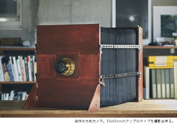 そのために、50x60cmのアンブロタイプを撮影出来る大判カメラを自作することにしました。カメラの歪みによる光線漏れや、蛇腹の形状など、改良を重ねながら形にしていきました。