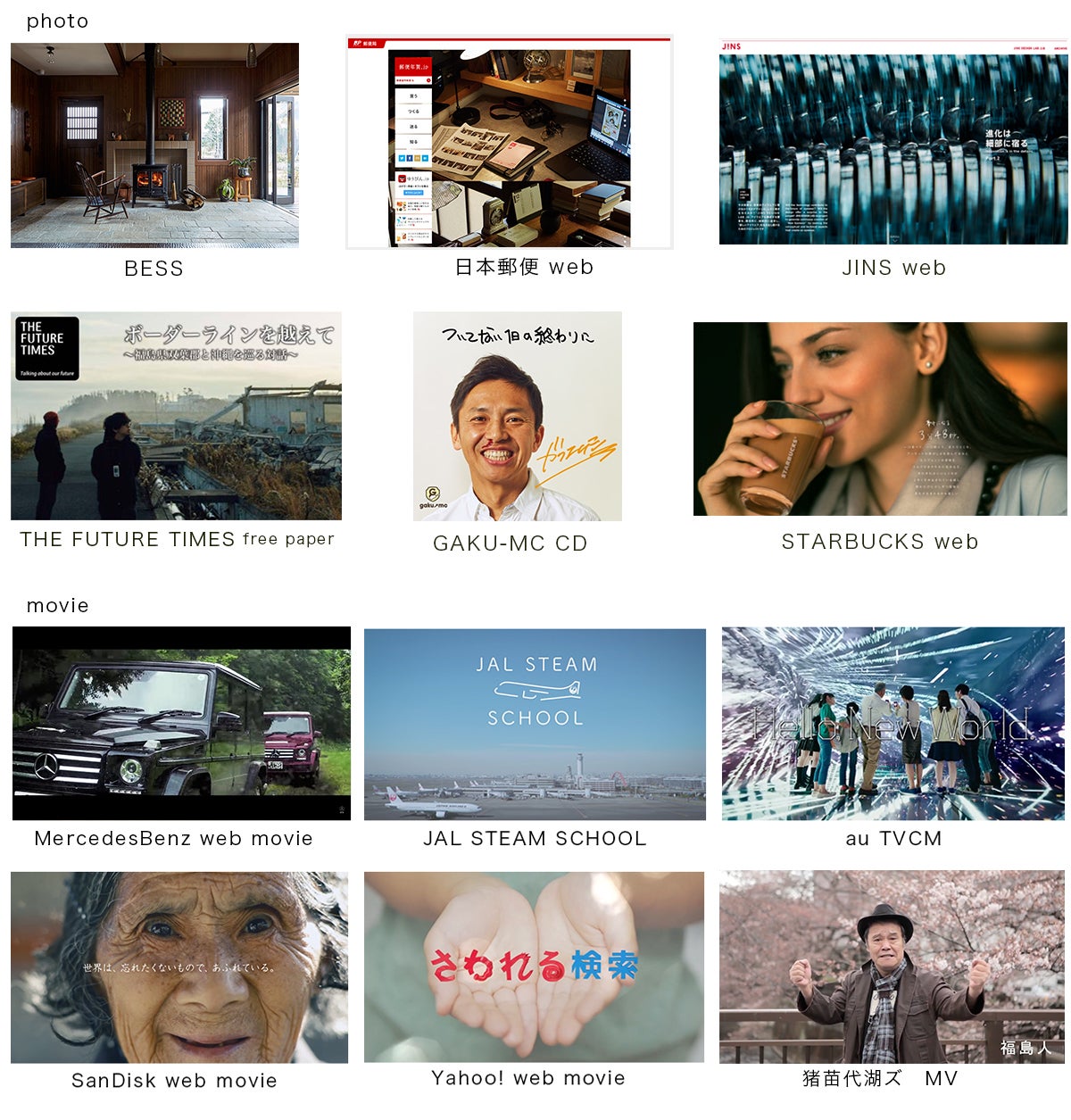 その後、フリーランスのアシスタントを経て、現在は写真と映像のカメラマンとして、広告などの仕事を手がける傍ら、自身の写真作品制作を続けている。