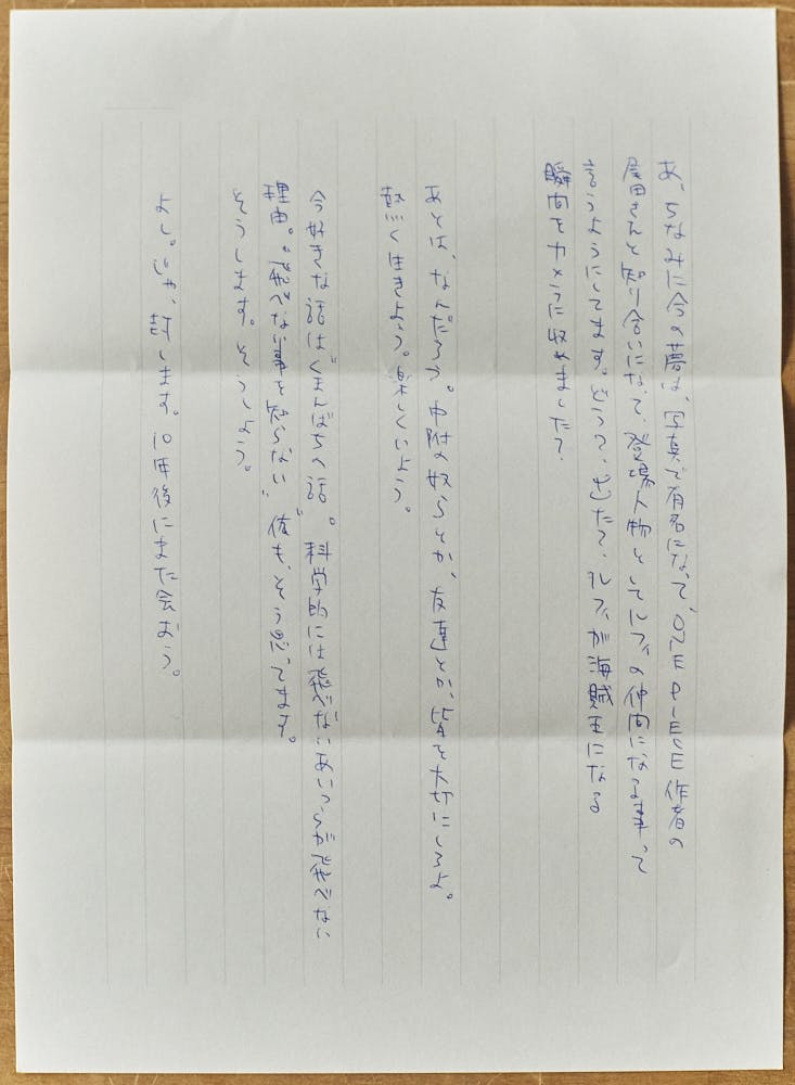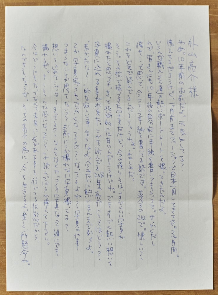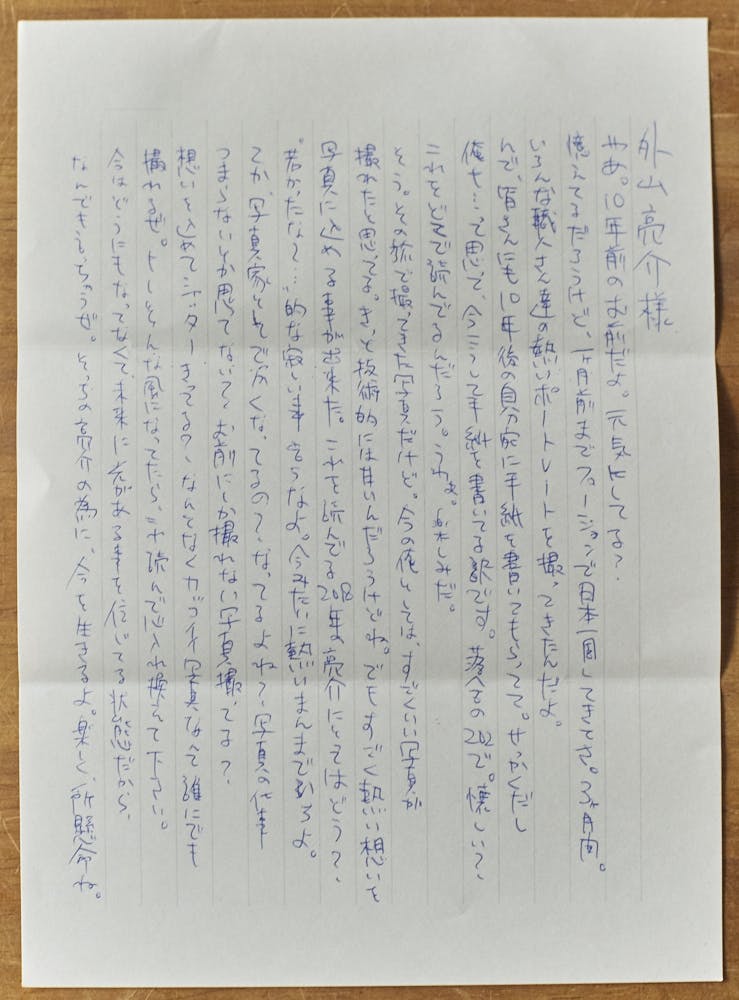 あれから10年。ずっとしまってあった自分宛ての手紙の封を開けました。封筒の中には、当時の僕の想いが綴られた手紙と、1枚のポラが入っていました。