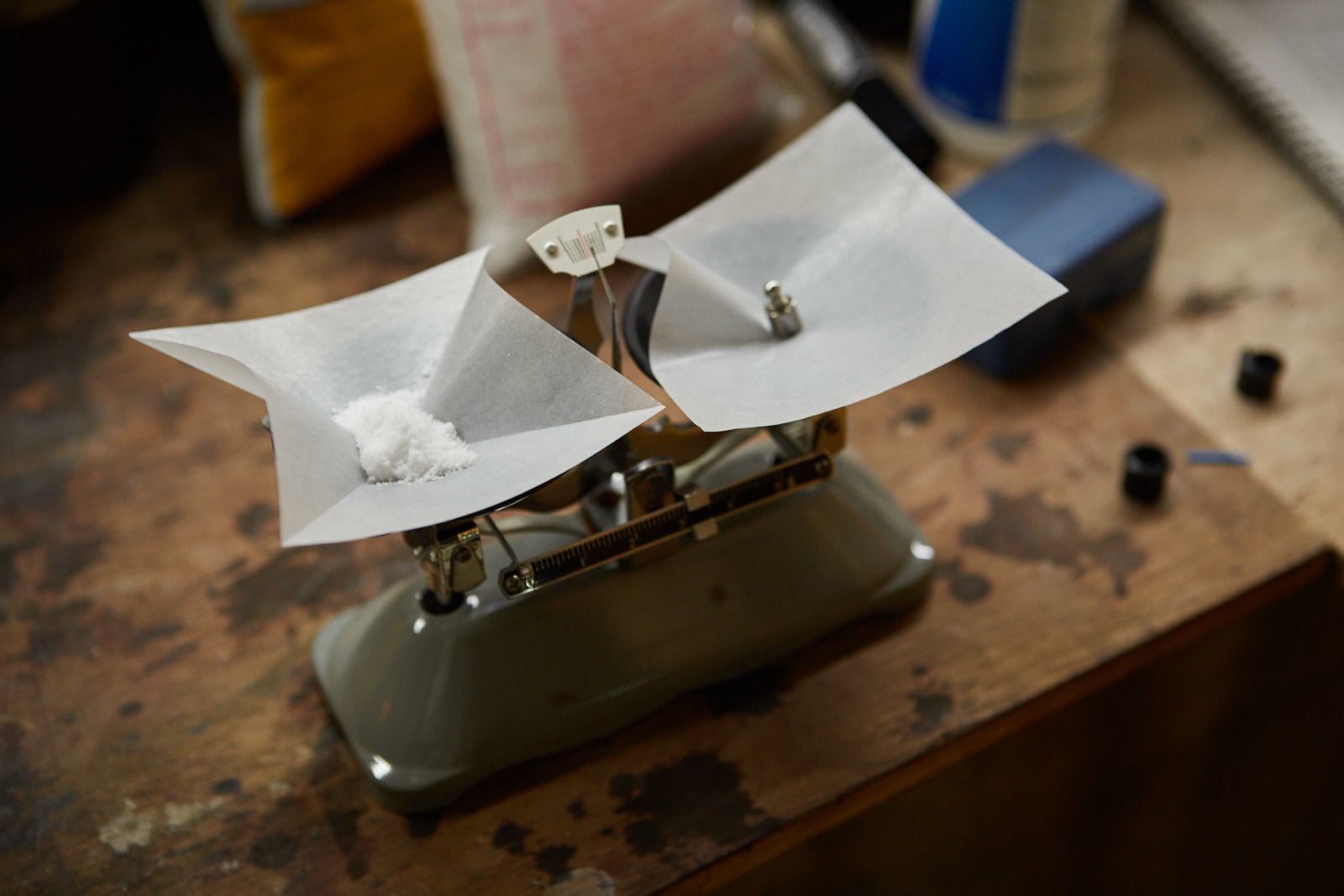 僕は昔懐かしの天秤を使って薬品の分量を計っています。理科の授業で使っていたあれです。デジタルスケールの方が便利で正確なのはわかっていながらも、これを使い続けています。