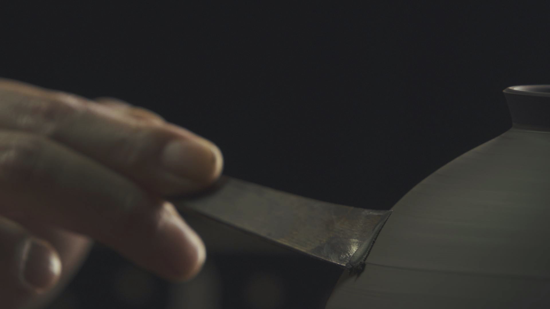 いくつものヘラを使い分ける。道具は自分の使いやすいように、自ら調整する。