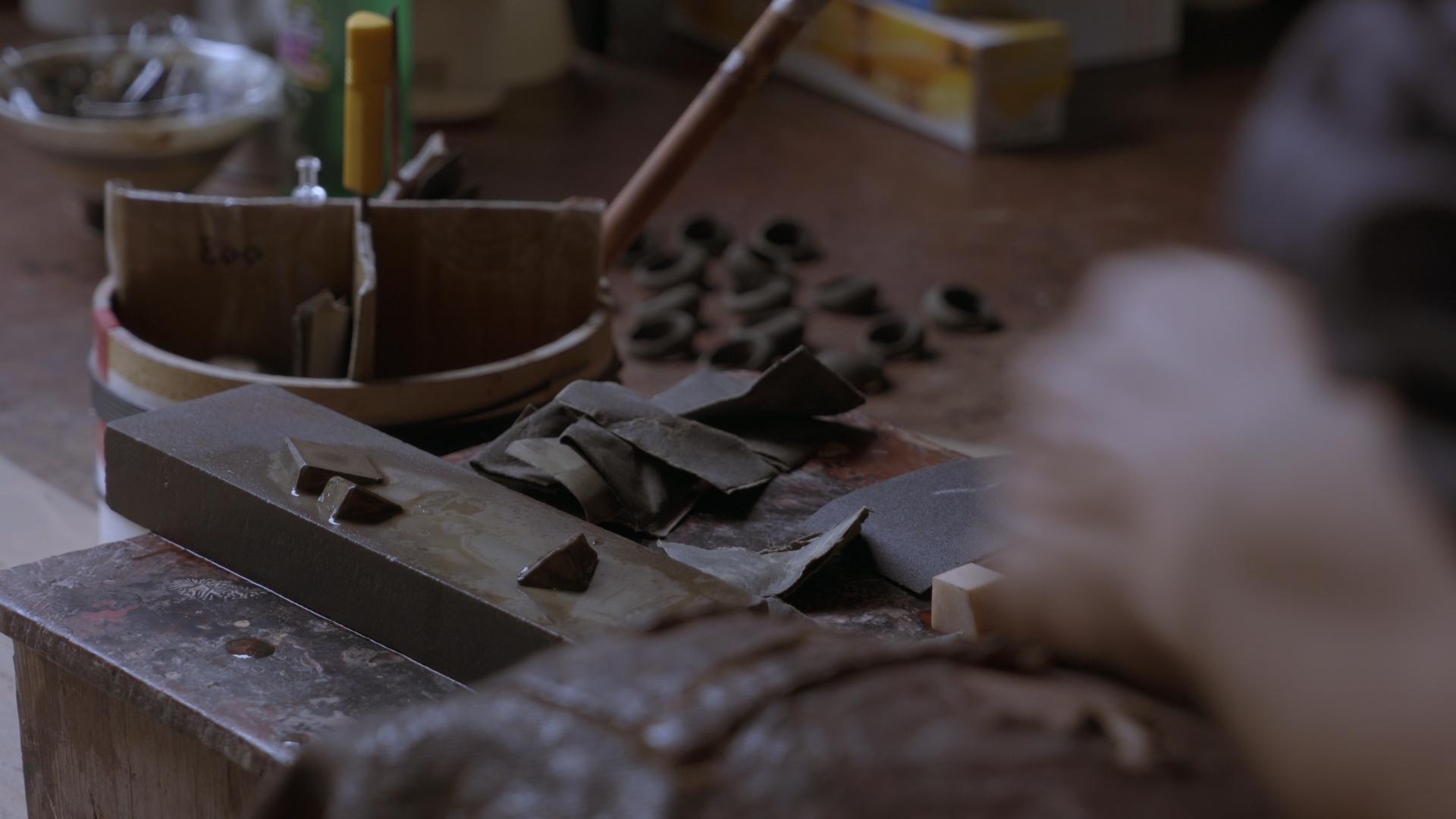 指で凹凸を確かめながら、砥石で研いでいきます。