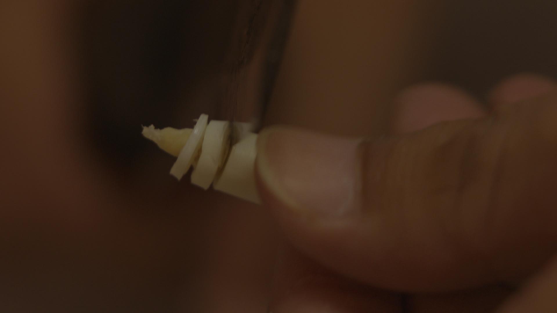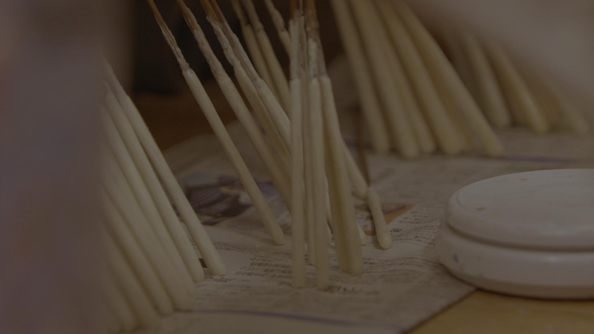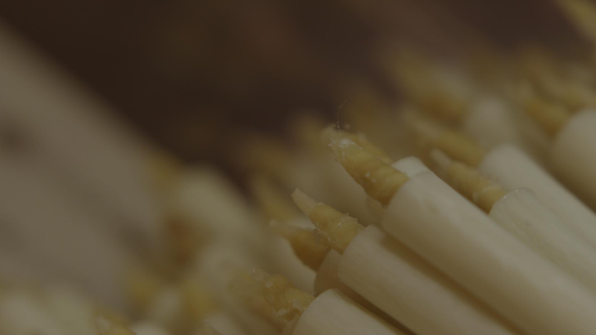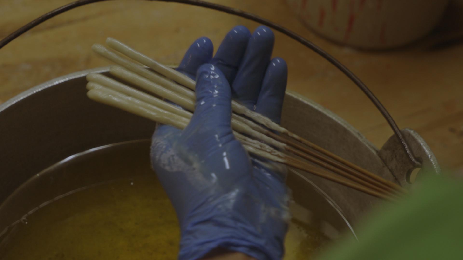 櫨(はぜ)蝋燭を作っているところを撮影しました。