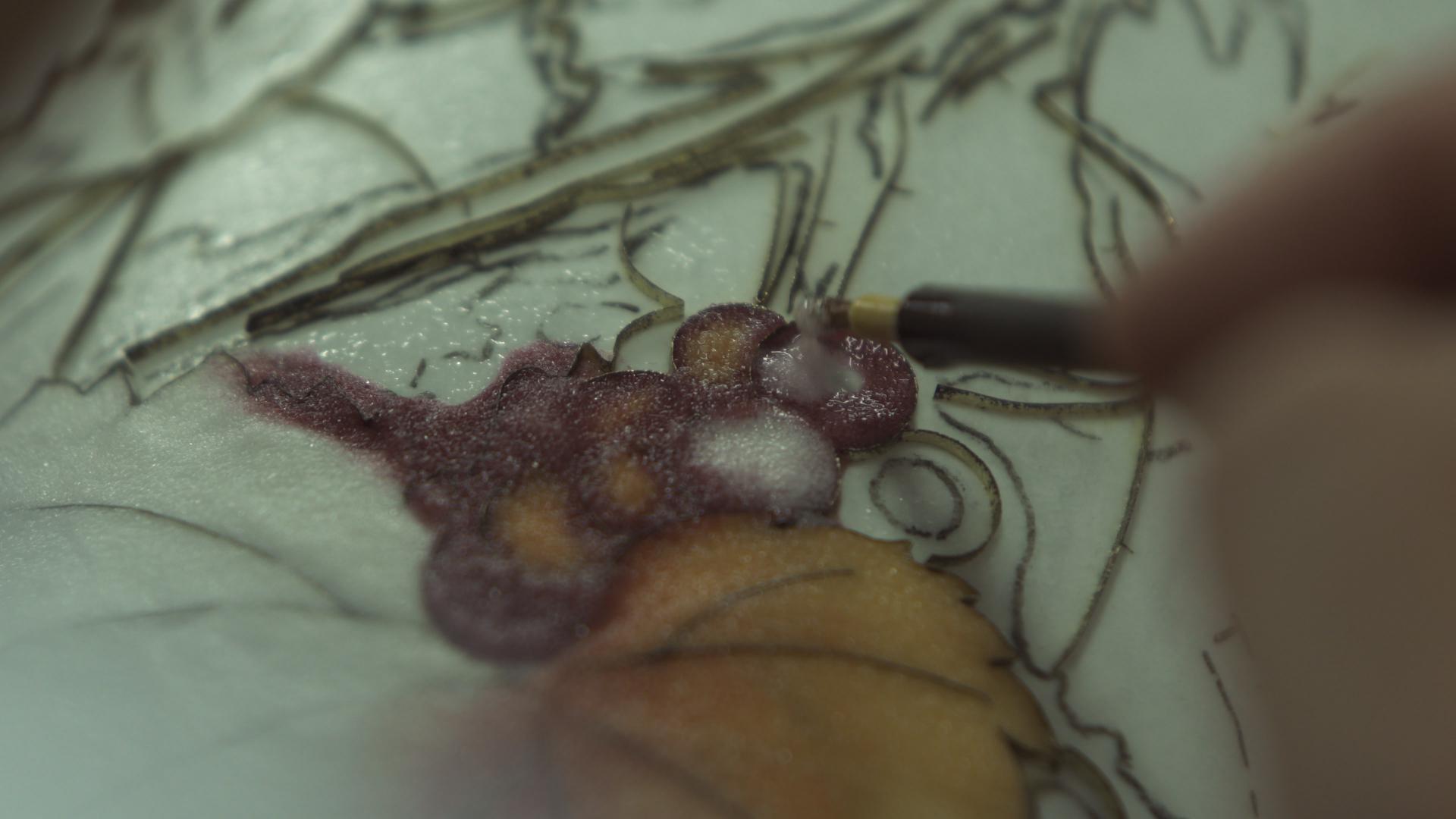気の遠くなるような細かい作業。たくさんの色を使いながら。