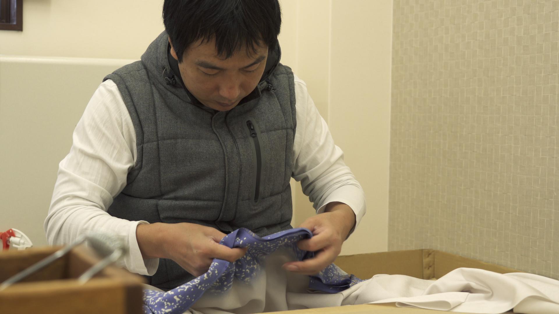 生地にハサミは必要な分しか入れない。お婆さんから孫に。仕立てをほどいて、洗張りして、仕立て直す。若い頃の派手な色を、少し抑えて染め直すことも出来る。