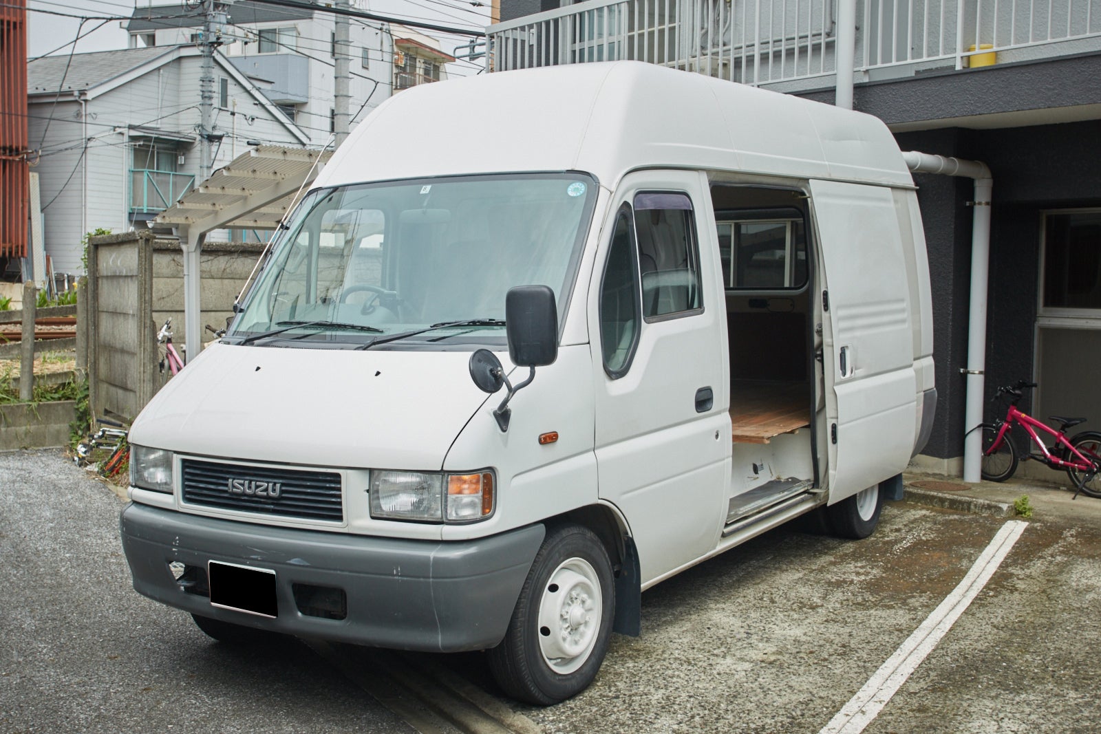 クラウドファンディング、100人の支援者までもう少しです!たくさんの方と、この作品を共有出来ることがとても嬉しいです!皆様引き続き、よろしくお願いします! 撮影準備を、着々と進めております。実は今回、クラウドファンディングを始める前に、この撮影用にボロのトラックを買っていました。というのも、今回の技法アンブロタイプは、暗室内で薬品を塗布して、その薬品が湿っているうちに撮影、現像までをしなくてはならない、なかなか厄介な技法で。外で撮影をする為には、移動暗室が必要なのです。当初は元々乗っていた車の荷台を暗室にしていました。 でも、50x60cmのアンブロタイプをこの荷室でカバーするにはかなり厳しいな、、、とは思っていて。撮影が近づいてきて、イメージを膨らませていたら、どうあがいても無理な事に気付き。。。撮影出来ないのは話にならない!買うしかない!と踏み切りました。これで、移動手段、暗室、宿を手に入れました。 が、ことはすんなりとは運びませんでした。いざ購入して、横浜の中古車屋から乗って帰ってくる時のことです。走り出してすぐに、車内にちょっとキュル、、、キュルと音が響きます。「トラックってやっぱりうるさいんだなぁ、、」程度に考えていました。が、その音が距離を追うごとにだんだん大きくなっていきます。中古車屋に電話しました。「あー、ベルトの音ですね。でも走行には問題ありませんよ。」「全国廻るのに、この音と付き合わなきゃならないのか。。。まぁ仕方ないか。。。」しかし、走っていくごとに、その音はギュルギュルとかなり大きな不快音に変わっていきました。中古車屋からはすでにだいぶ離れてしまいました。もうこのまま東京に戻るしかありません。が、これはちょっと普通じゃない音です。その日は40度近くまであった暑い日。環八は渋滞。座席の下にあるエンジンがものすごい熱を発し、車内は灼熱地獄。そして不快音。なんなんだこれは。。。中古車屋に電話すると「家のそばのディーラーに持って行ってください。おかしいなぁ、点検もしてあるんですけどねぇ。」「・・・」渋滞を避けて住宅街を走っていくと、より一層異音が響き渡ります。歩道を走る小学生たちが、この車を見て笑いながら追いかけてきます。「すごい音してるよ!!笑」異音でかき消されて聞こえませんでしたが、口がそう言っていました。僕も「わかってる!」と口をパクパクさせました。道行く人みんなが振り返ります。申し訳なさと憤りと、いろいろな感情を抱きながら、そのまま練馬のいすゞに乗り入れ、買ったばかりの車は入院しました。 そして先日、車が戻ってきました。撮影が始まる前に一通り点検してもらえたのは、逆にラッキーだったのかも、と今は思っています。 立って作業できる高さの荷台。 中を黒く塗り、作業台を作りました。 あとは使いながら、少しずつ手を加えていきます。 寝床をどうするか、、、コット?マット?オススメとかありますか? とにかく、こいつと一緒に、全国を廻ってきます!