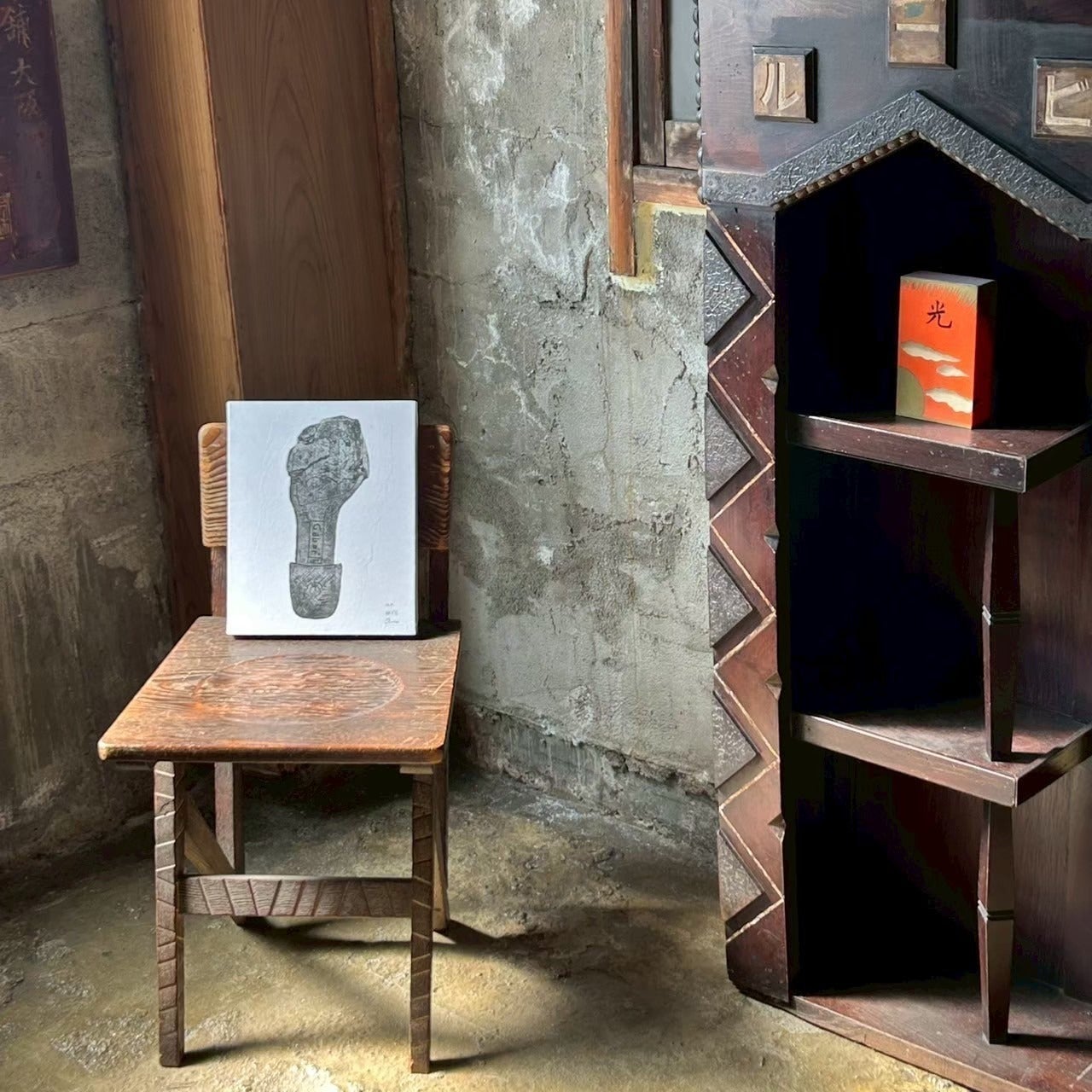 2000年⽣。京都府出⾝。京都精華⼤学版画専攻卒業。ヒビ、歪み、サビといった時間の経過をモチーフに、⽊版を主とした作品制作を展開し、個展を開催。
