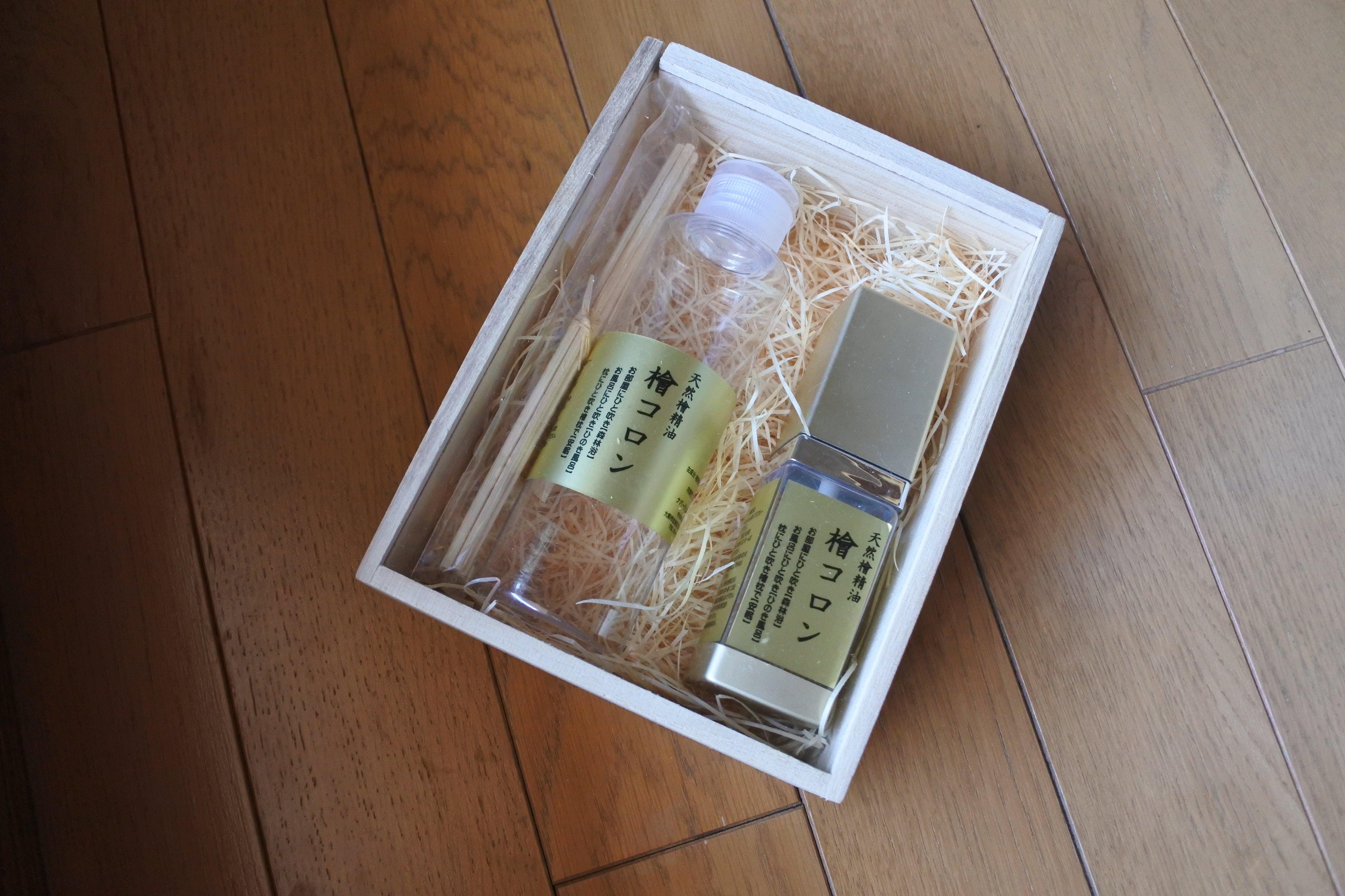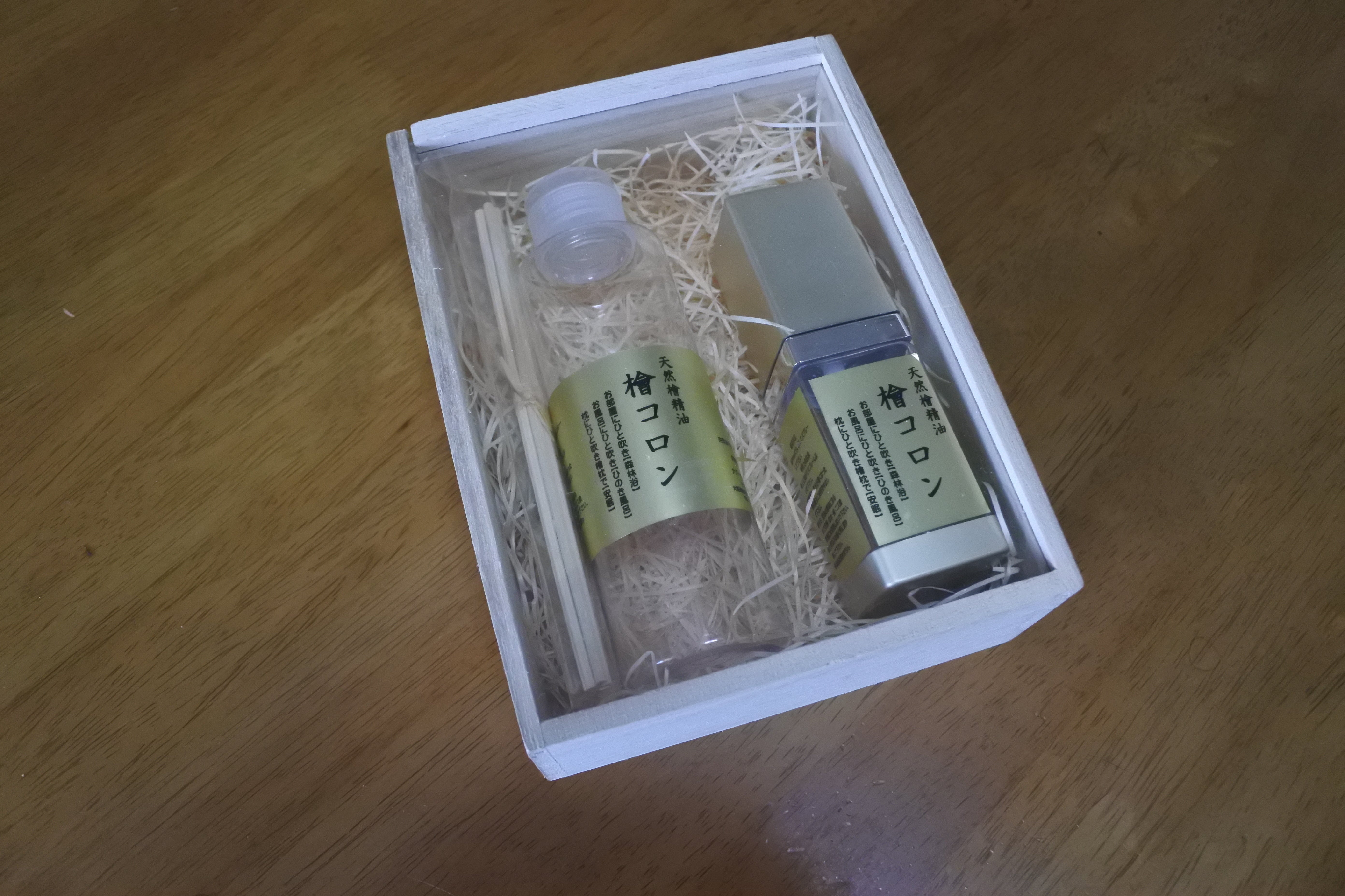 ・檜コロンS(50ml・1,000円)+檜コロンL(150ml・2,300円)=3,300円を、3,000円で中藤さんよりご提供頂きます。