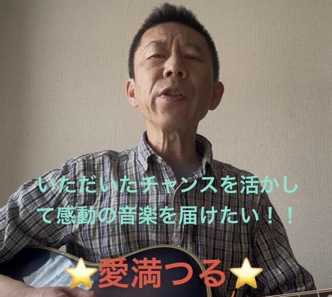 私『愛⭐️満つる』は音楽を愛する還暦を迎えた一人の平凡であり非凡と自負する者です。人生そのものが音楽と感じている私は12歳の頃からギターを始め、高校の頃はフォークソング同好会でサイモン&ガーファンクルのコピーデュオを組み文化祭で1位通過したり、成人してからはカラオケ大好きサラリーマンをしてきました。それなりに歌は上手いのかなと感じていましたが、今回歌手募集のオーディションを試しに受けてみたところ、1次審査ではSuperflyの『愛を込めて花束を』を歌唱し通過!2次審査ではMr.Childrenの『放たれる』を歌唱し合格させていただきました!こんなチャンスは滅多にあるものではない!と思い、今回のプロジェクトを通じて、プロの作曲家先生に作っていただいた楽曲を通じ、多くの方々と音楽の素晴らしさを共有したいという想いに至りました。