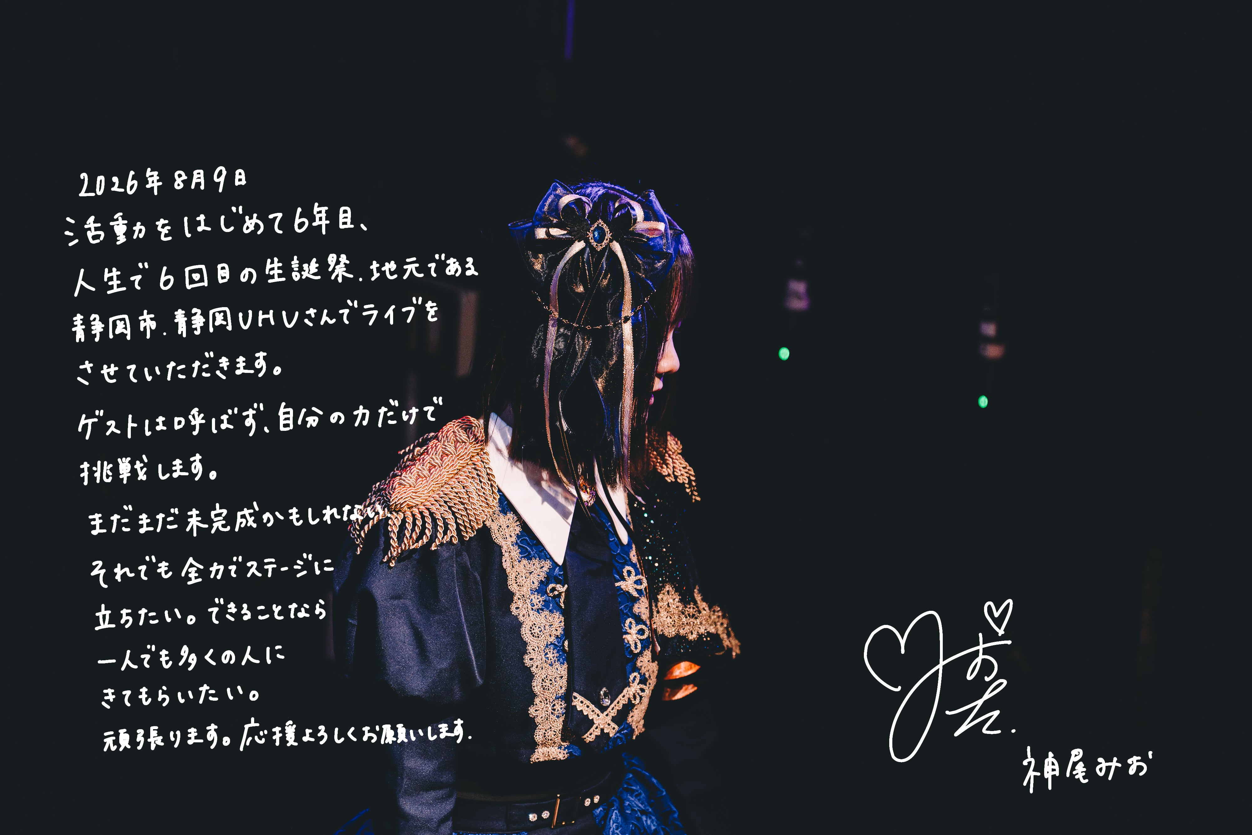 2026年8月9日(日)静岡のライブハウスUHUにて開催される、アイドルユニット「わんらいむ」のメンバー、神尾みおの生誕祭応援プロジェクトです。