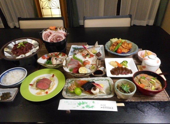 *「ぼたん鍋セット」は四季美谷温泉で実際に提供されている食材を