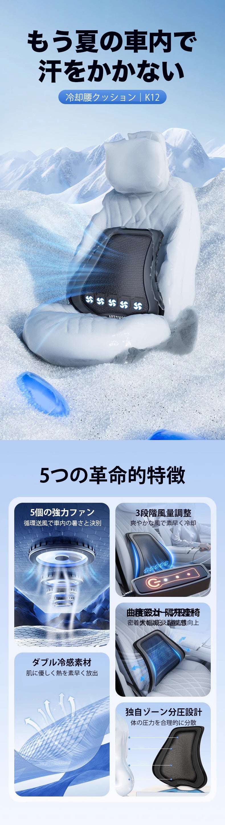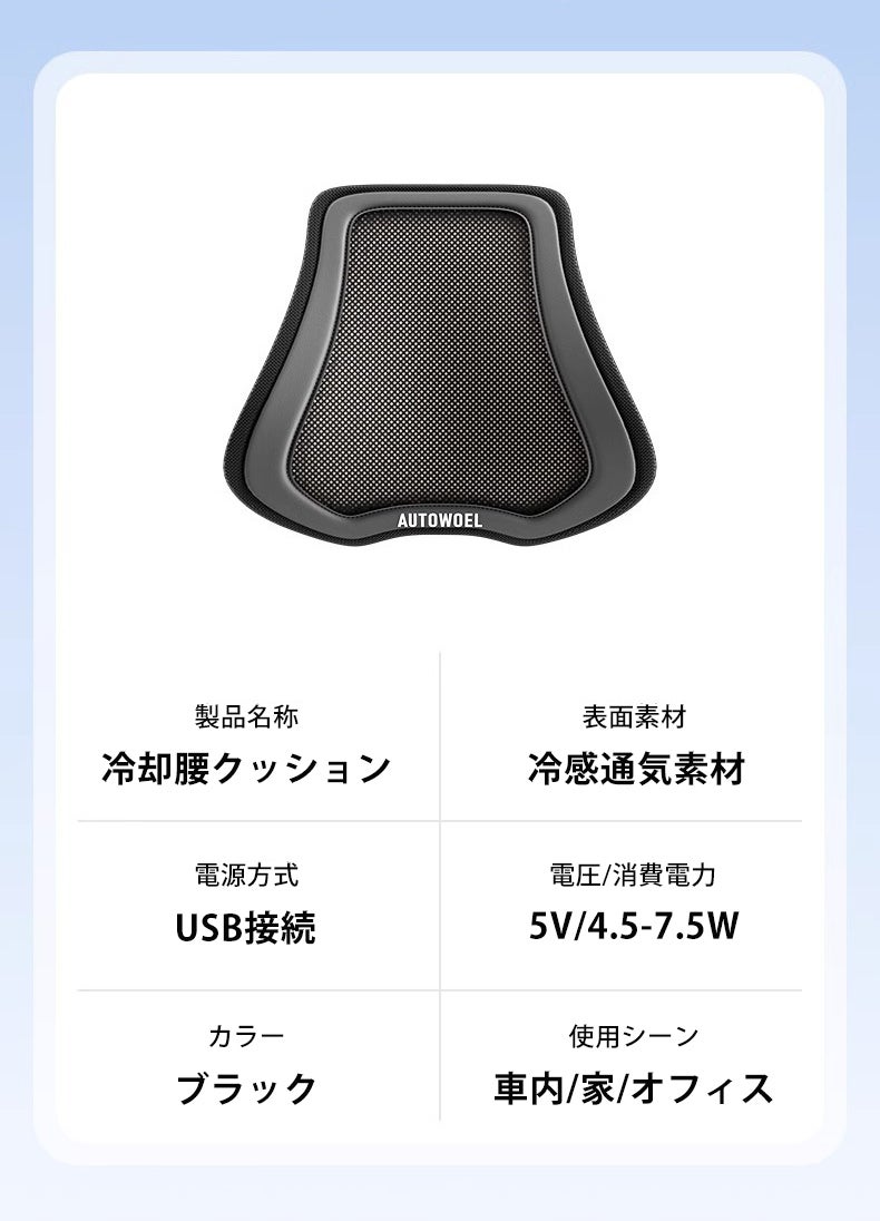 【夏の車内、もう汗ばまない】冷却腰クッション「K12」