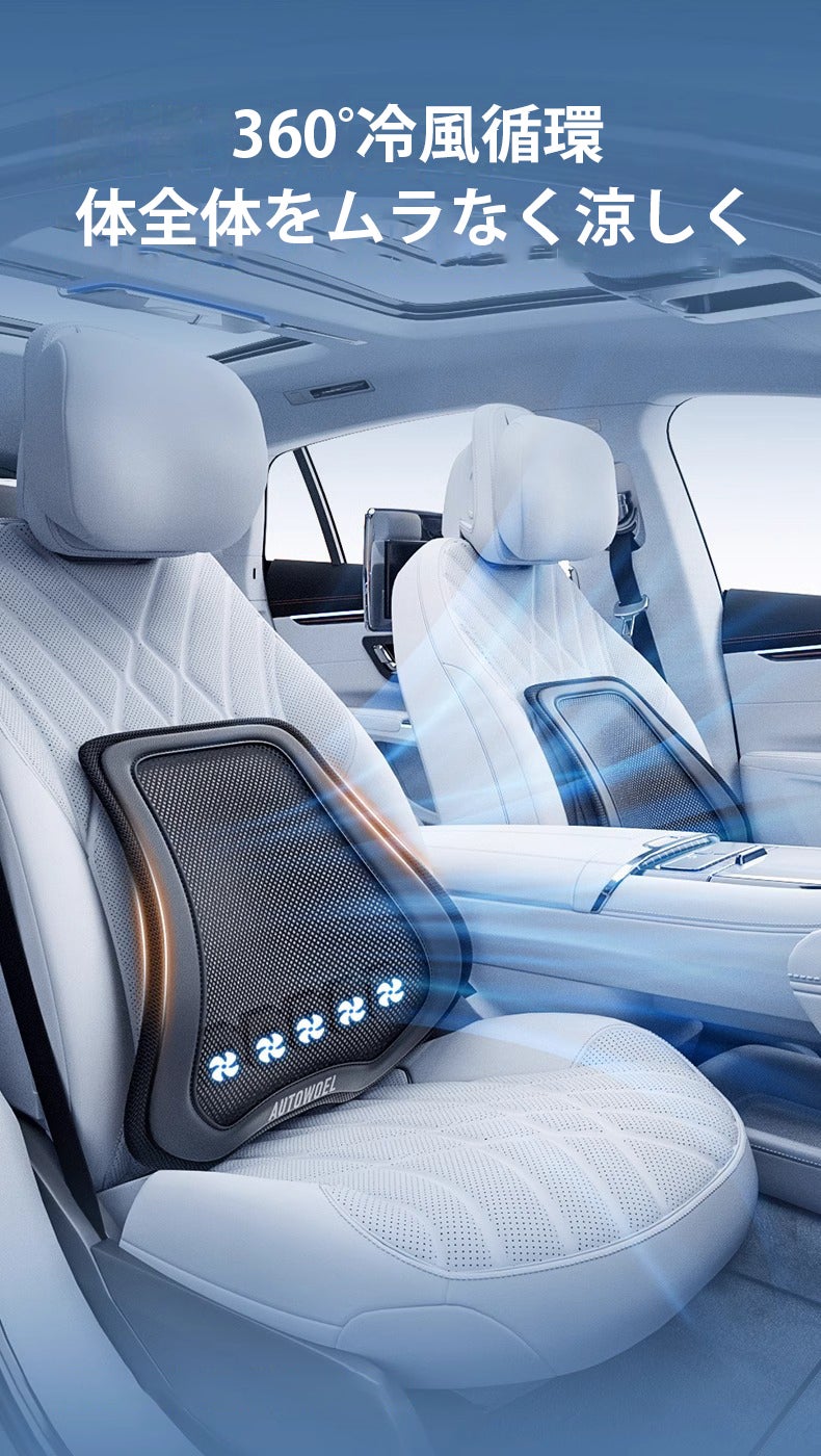 本製品は5つの高性能ファンを同時に高速回転させることで、腰や背中など熱がこもりやすい部分に力強い風を送り出し、がすため、長時間の運転でも快適に過ごせるようになります。