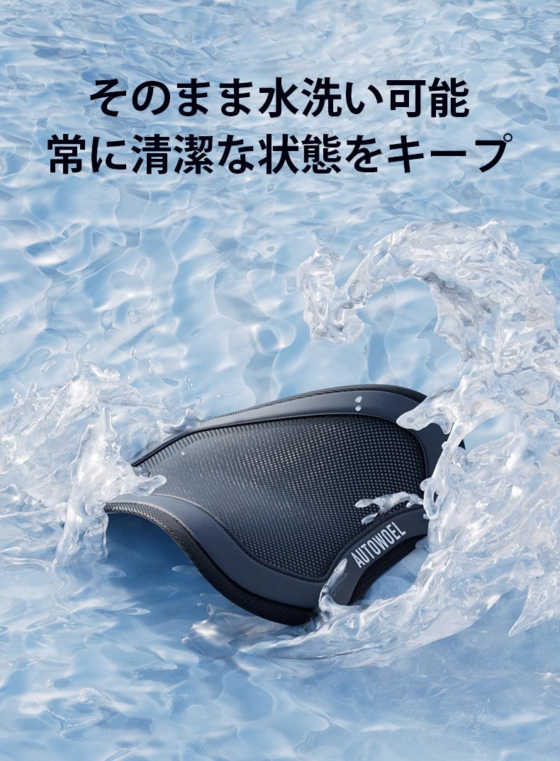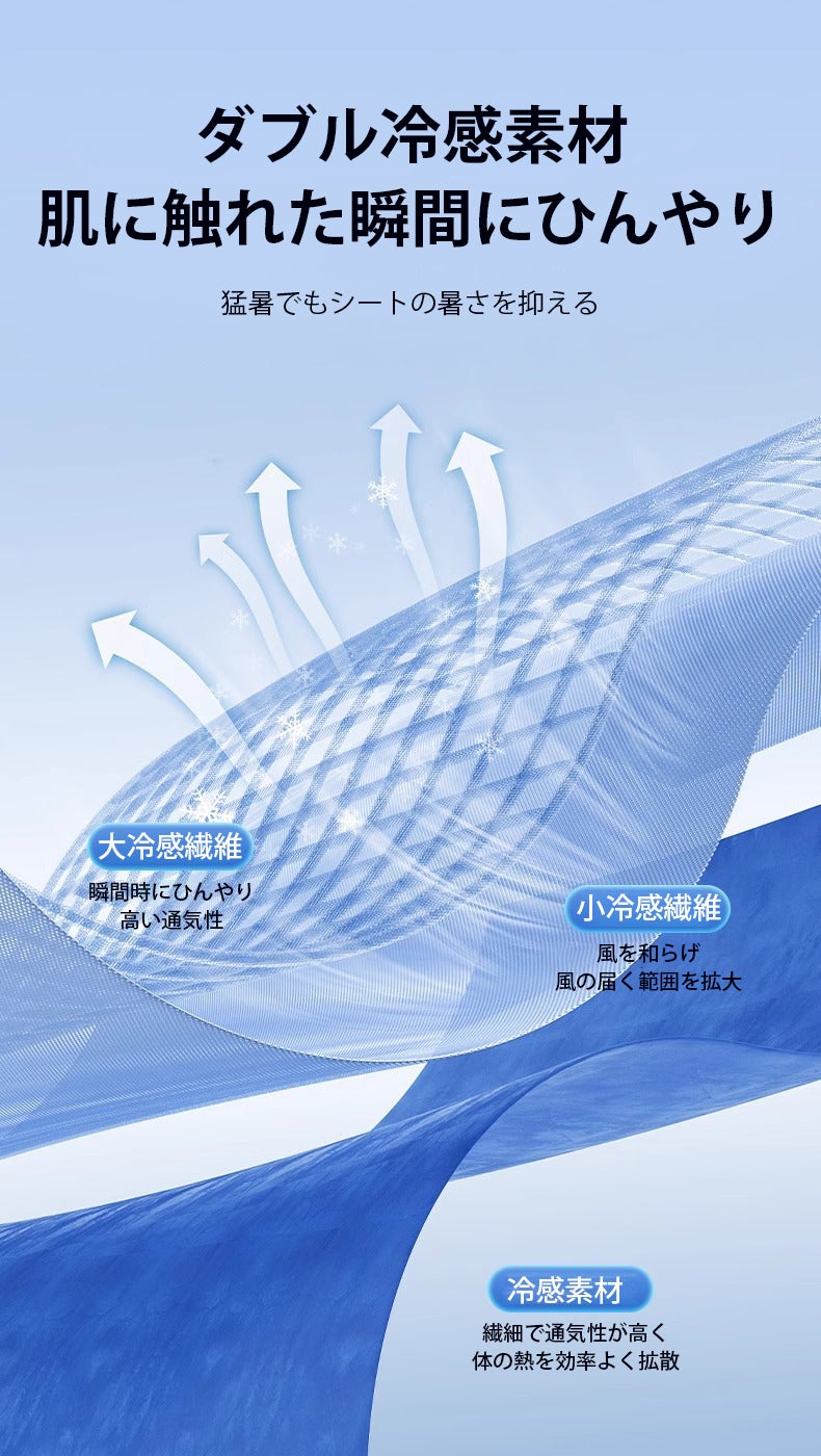 本製品のクッション表面には、接触冷感素材と高通気メッシュの二層構造が採用されており、肌に触れた瞬間にひんやり感じられ、猛暑でもシートの暑さを抑えます。