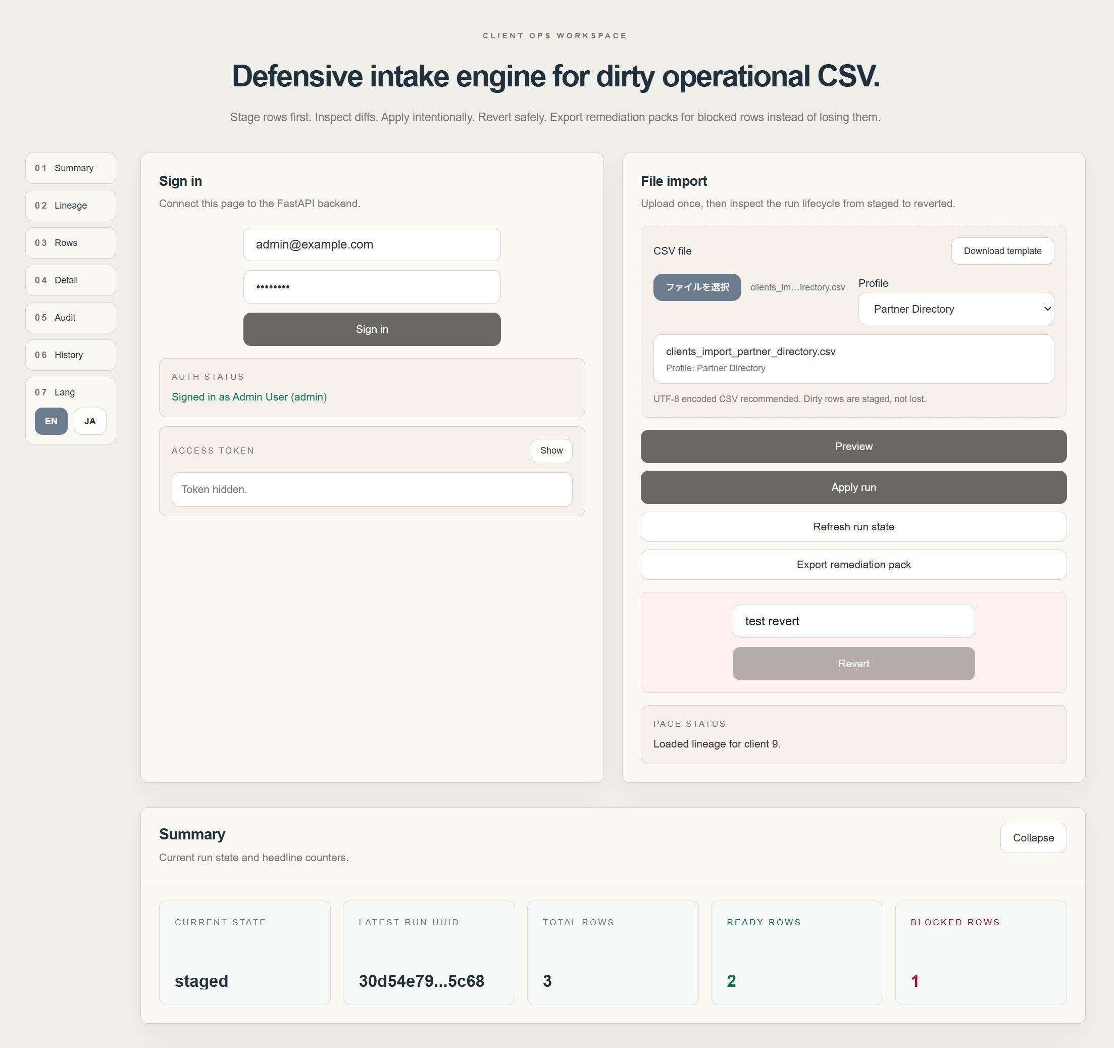 現在、このプロジェクトでは、CSV取り込み時の確認・切り分け・再確認につながる仕組みを少しずつ形にしています。