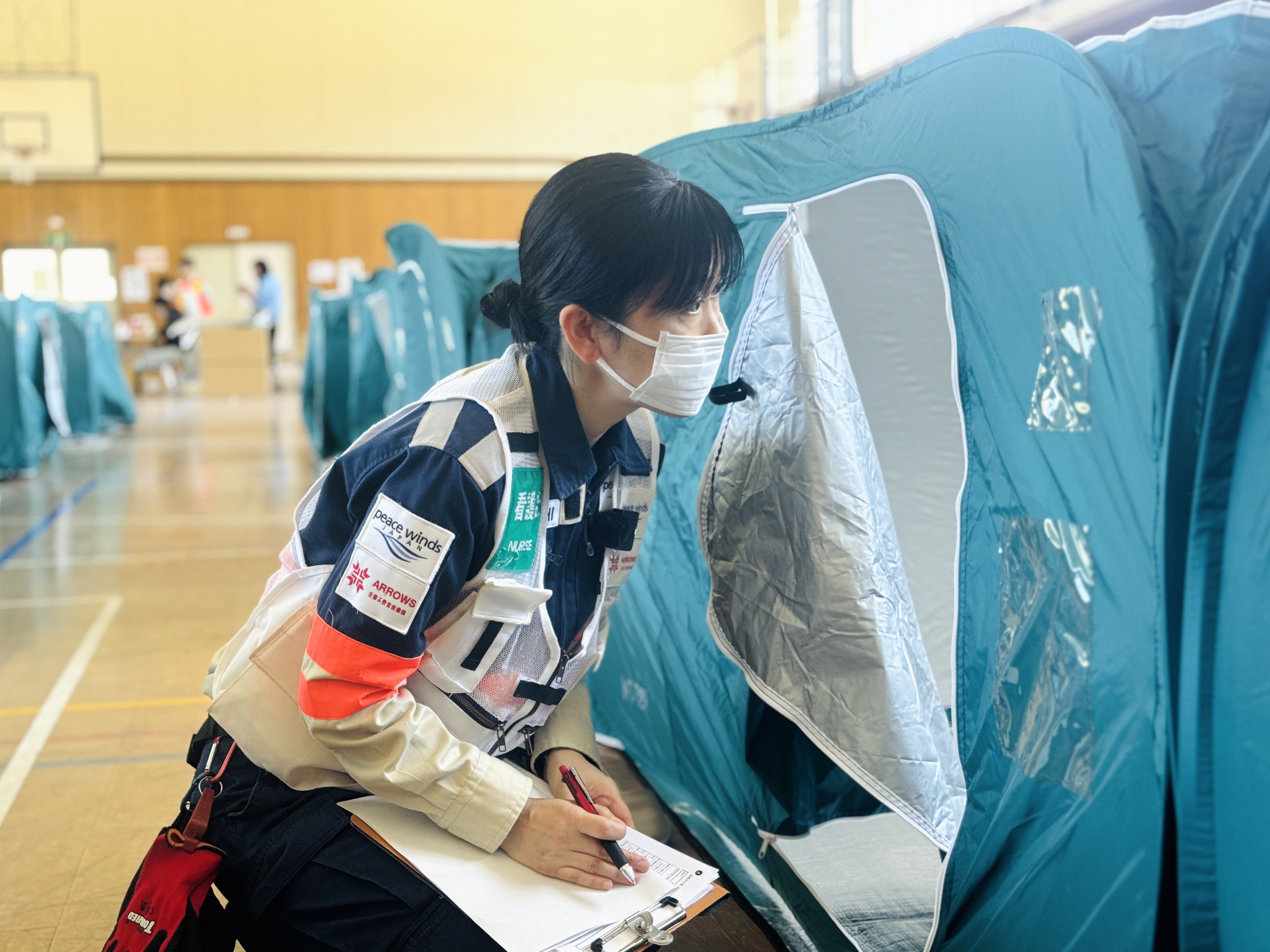 こうした緊迫した状況が続くなか、現地入りしたのち保健医療福祉調整本部に参画した空飛ぶ捜索医療団“ARROWS”の緊急支援メンバーは、ほかの支援団体と連携して新しく開設される避難所の環境調査と、要配慮者を確認する活動に従事しました。