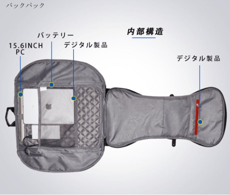 - ③ほぼA3サイズで、7つの機能をもつ多機能バックパック