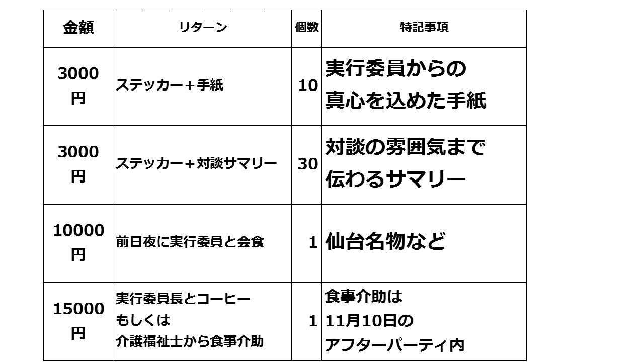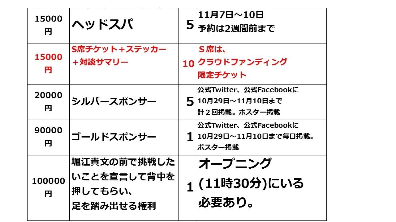 ホリエモン祭in仙台2018・クラウドファンディング内容 ※詳細な内容はリターン欄参照。