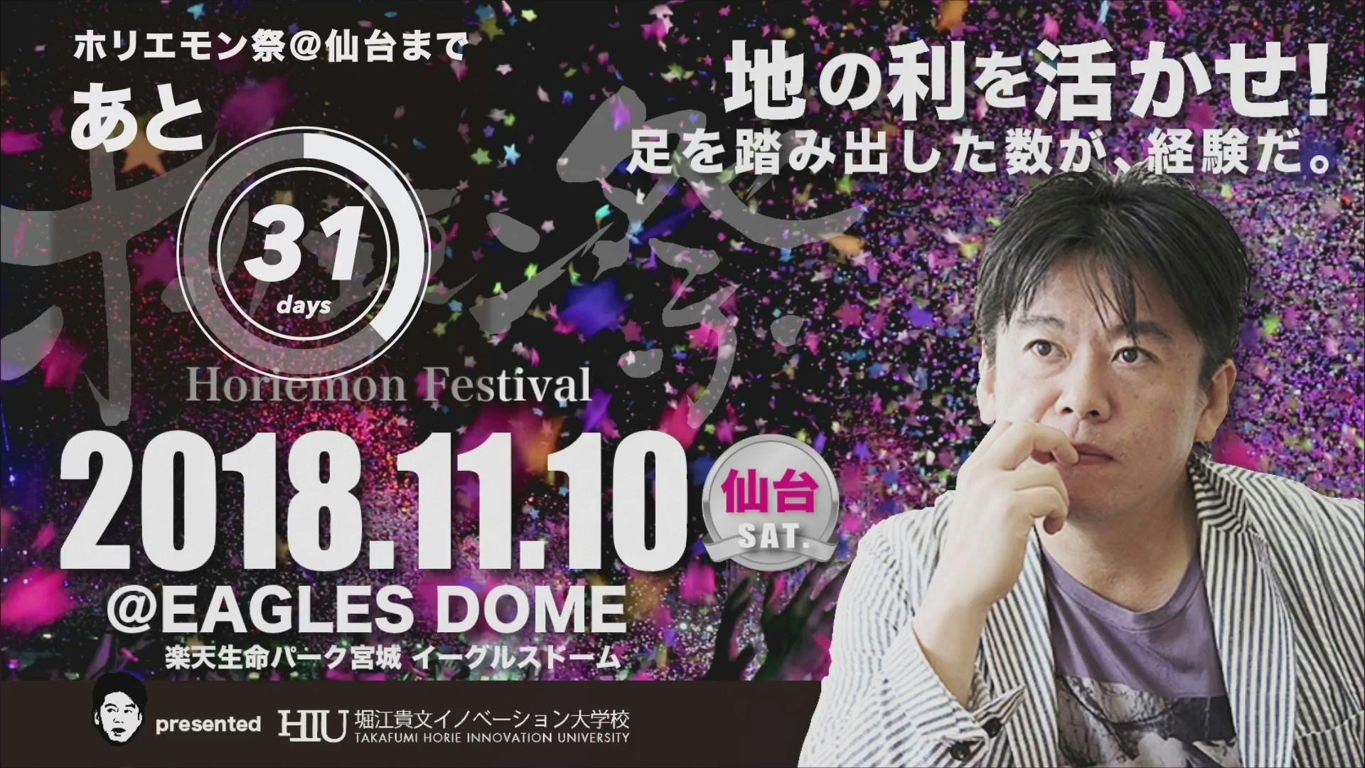 ホリエモン祭in仙台2018の開催まで、「あと31日」です!!