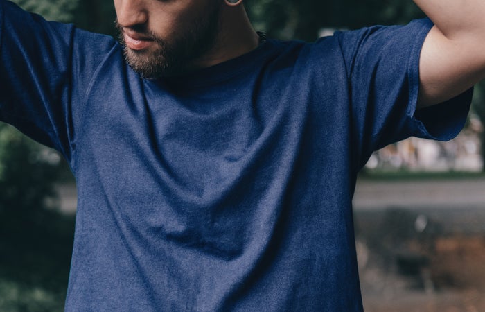 本藍染め手描きプリントTシャツ