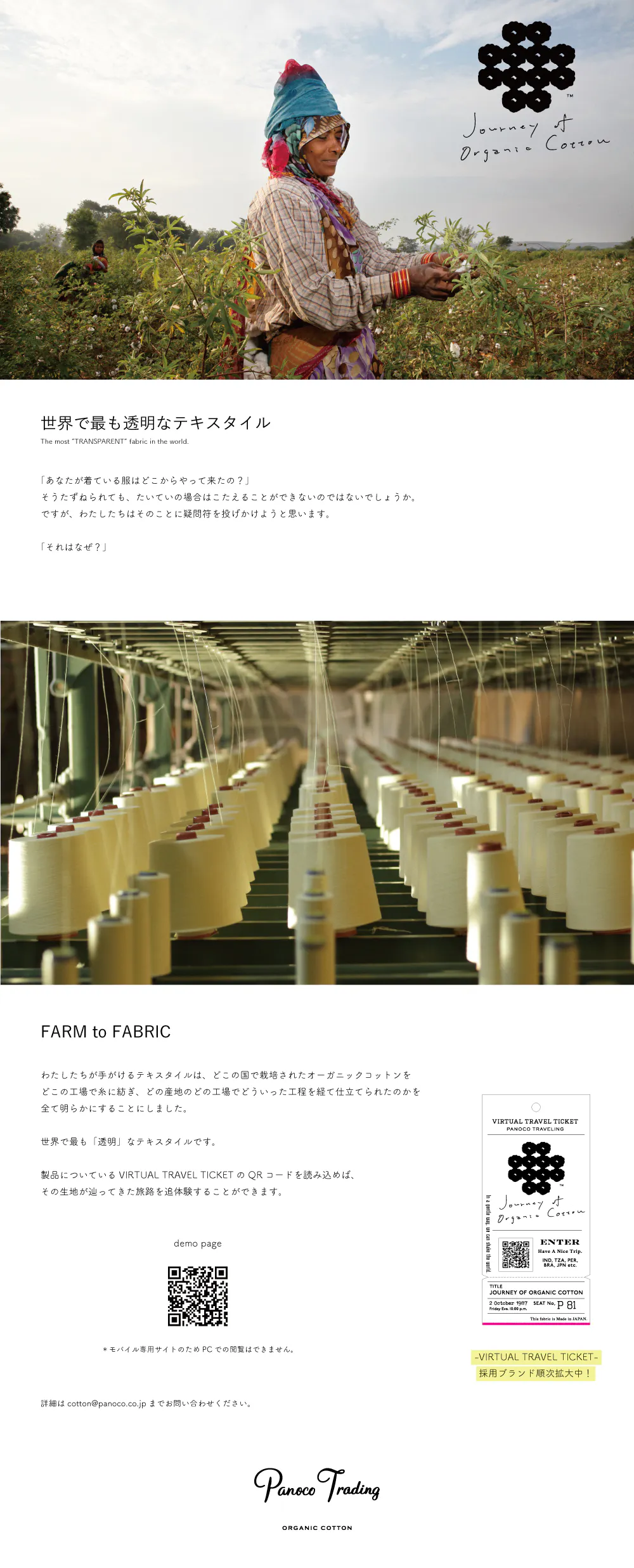 TシャツにつくタグのQRコードを読み込むと、生地が辿ってきた旅路を追体験することが出来ます。