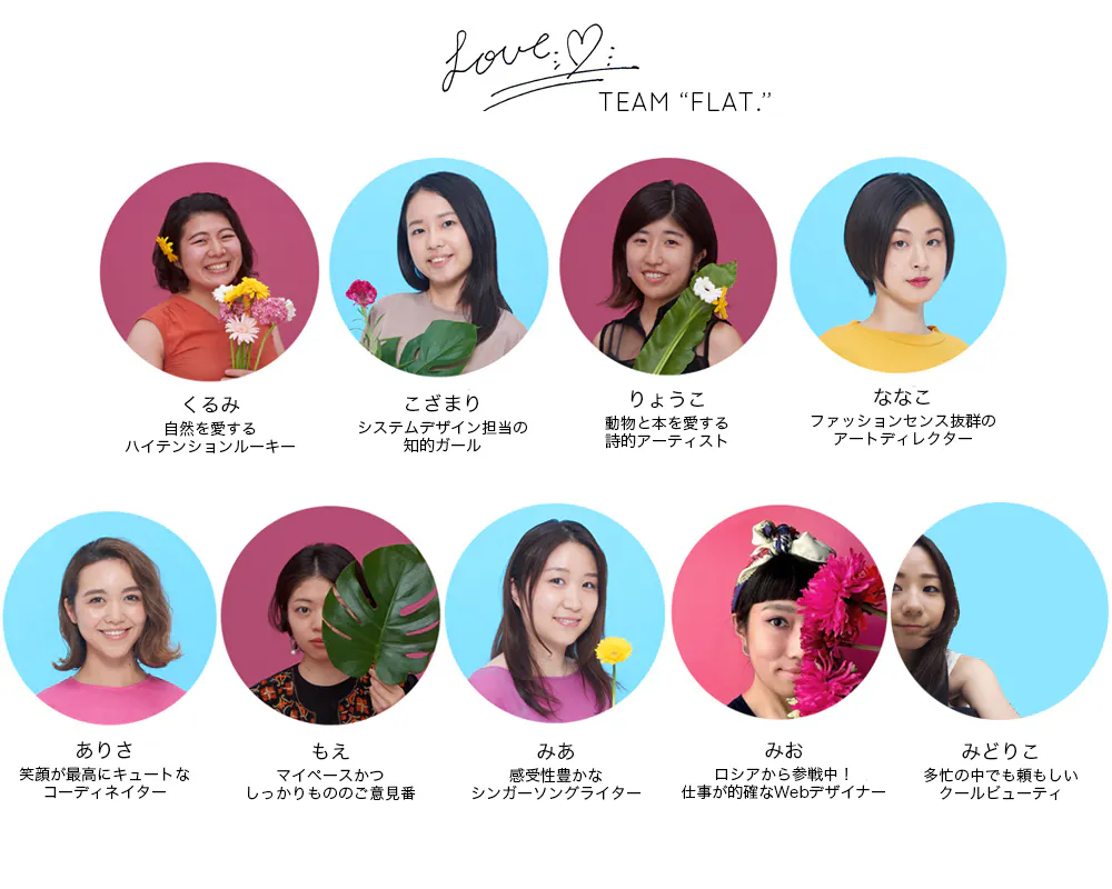 Webメディアマガジン FLAT. を中心に、ファッション、音楽、アートなどさまざまなジャンルで活躍する若手クリエイターチーム。